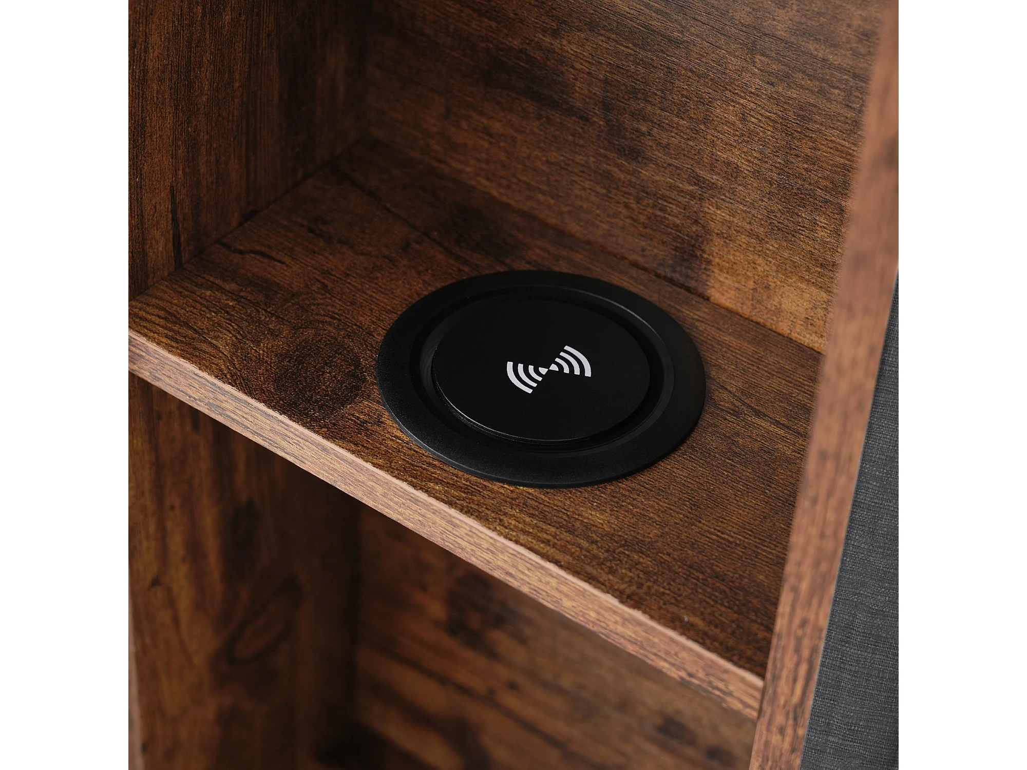 Letto matrimoniale con USB Type-C, testiera con contenitore, LED, lino, grigio (161x217x110cm)