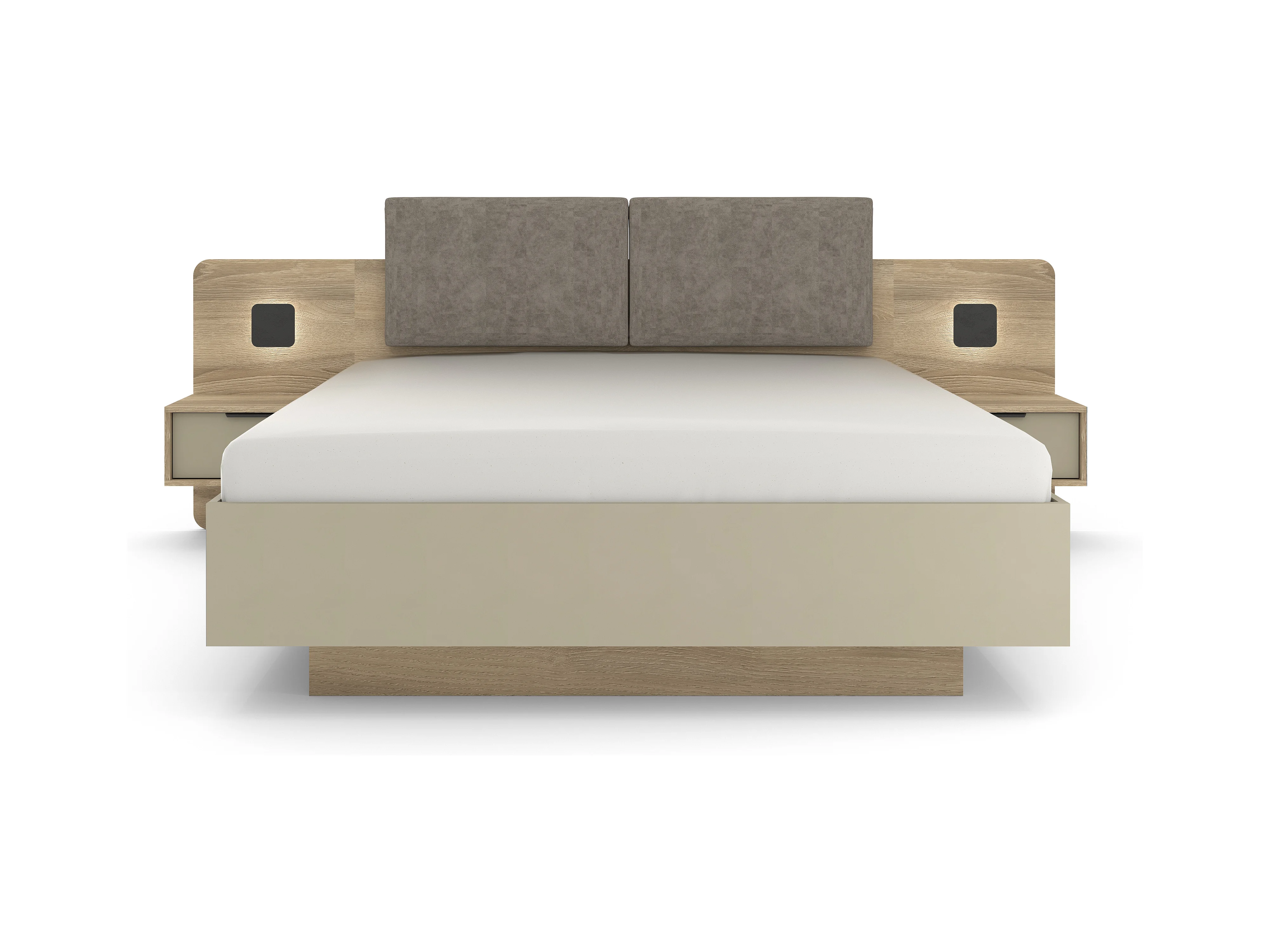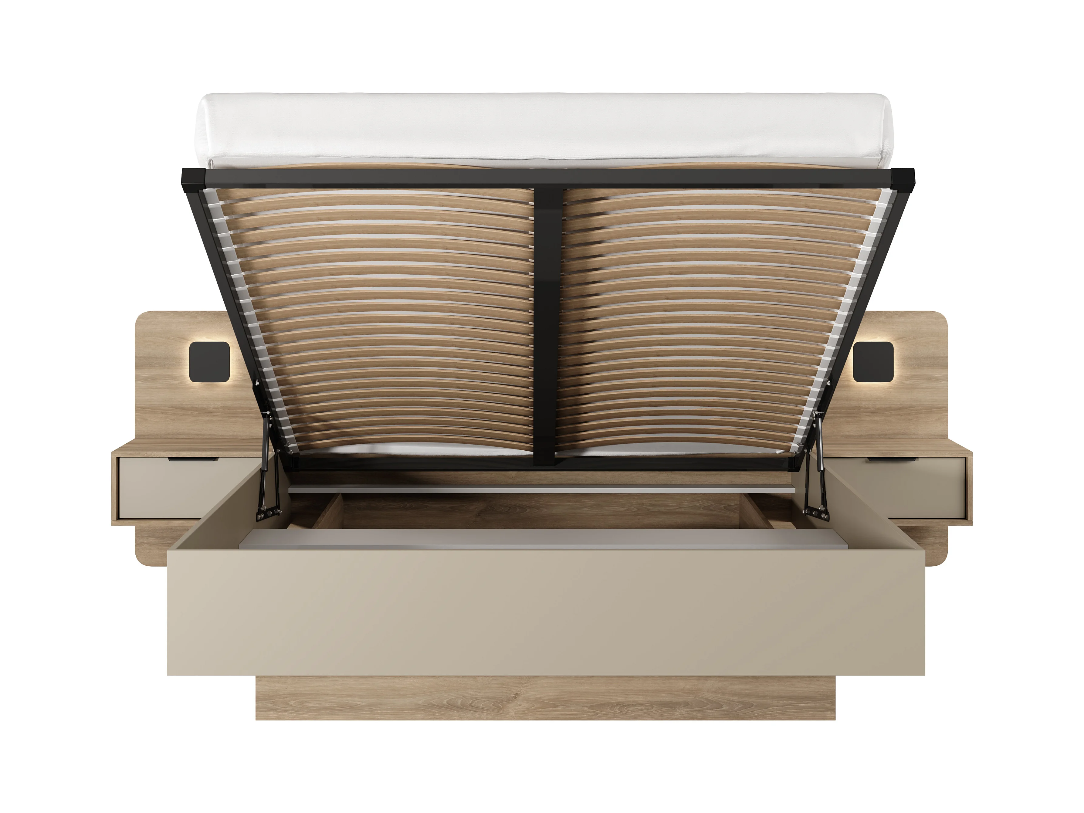 Letto matrimoniale contenitore 160x200 cm con comodini e LED in rovere e grigio pietra LLK14