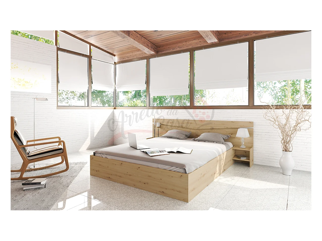 Letto matrimoniale contenitore con comodini a due ripiani 200x160 rovere LI2007