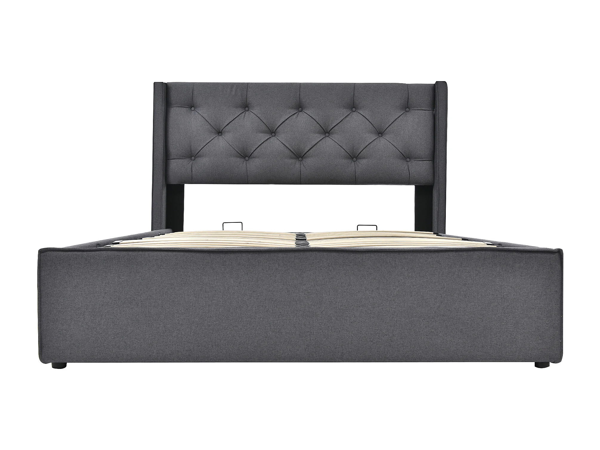 Letto matrimoniale contenitore per adulti 160x200cm - Tessuto di cotone grigio (con materasso)
