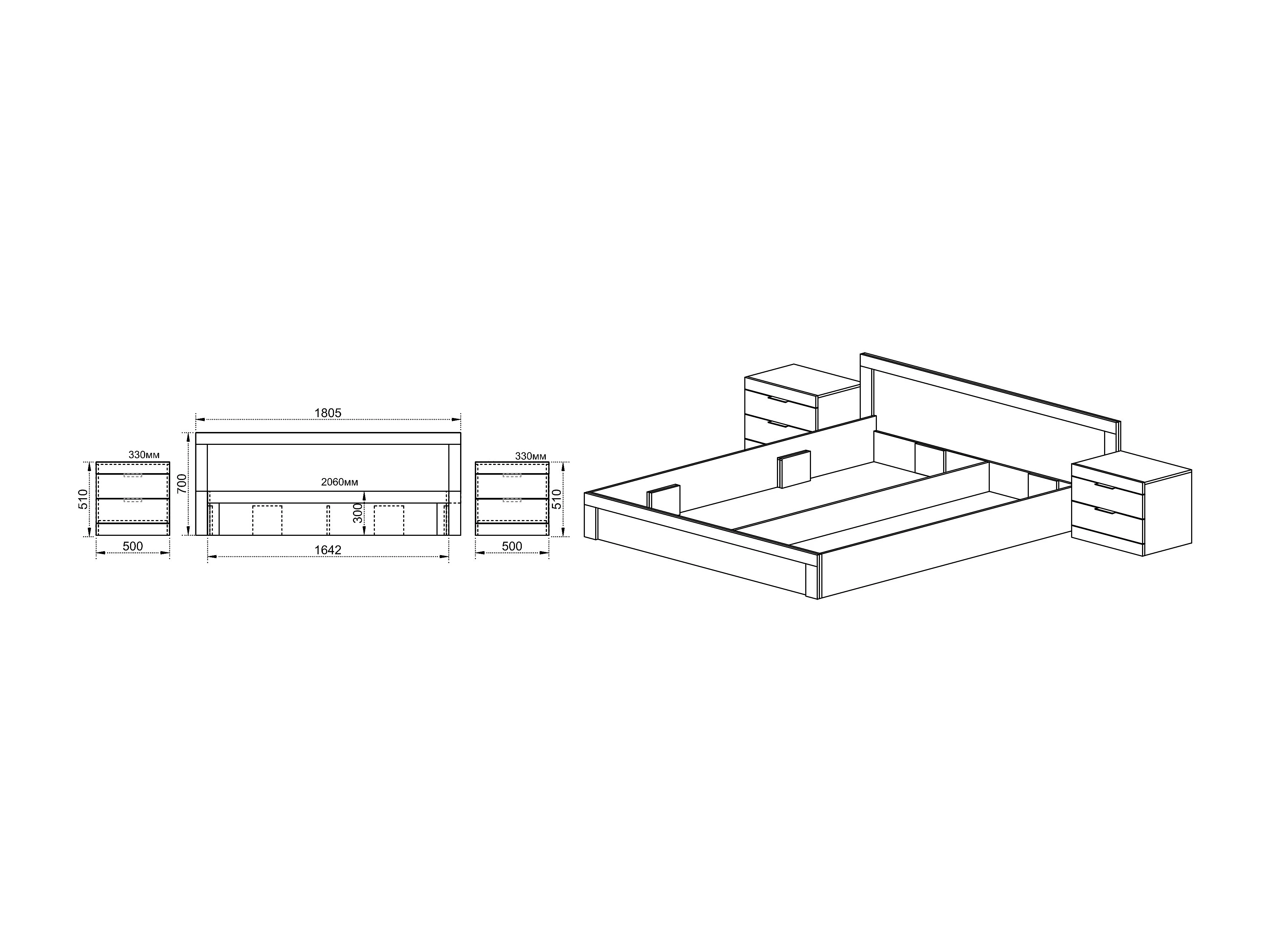 Letto matrimoniale stile moderno con due comodini 200x160 bianco liscio e rovere LI7