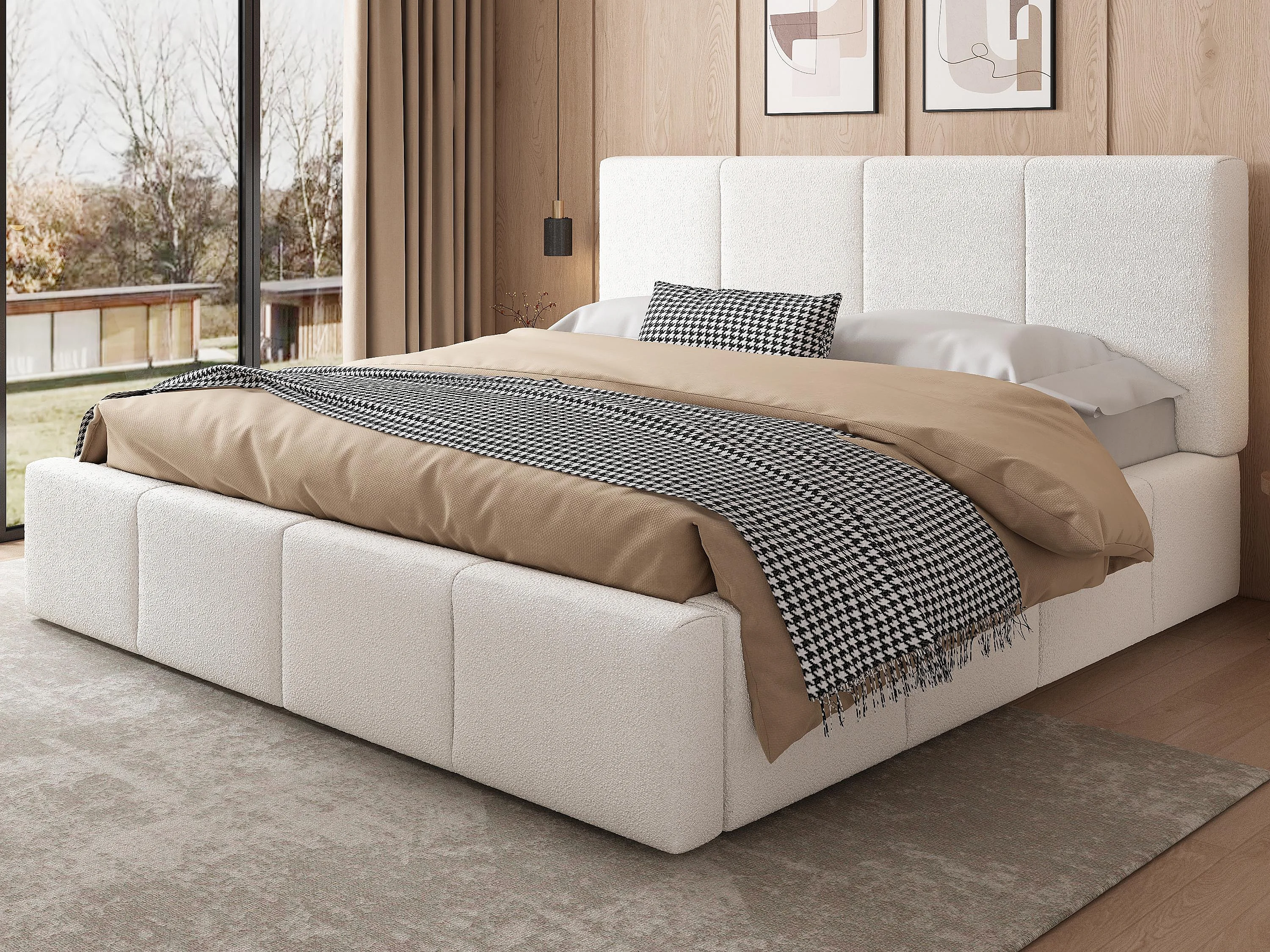 Letto matrimoniale imbottito 180x200 cm - con rete a doghe - Tessuto riccio - Beige (senza materasso)