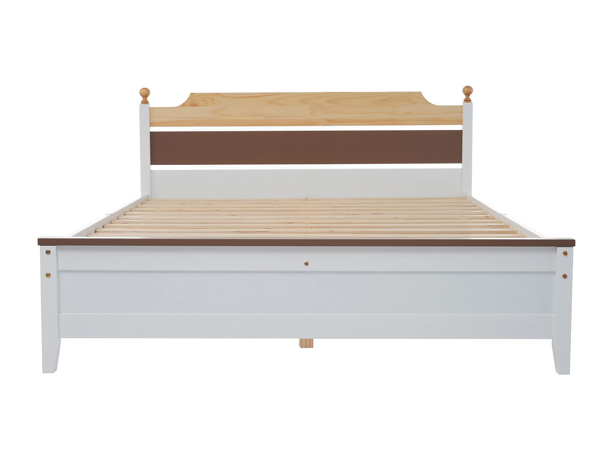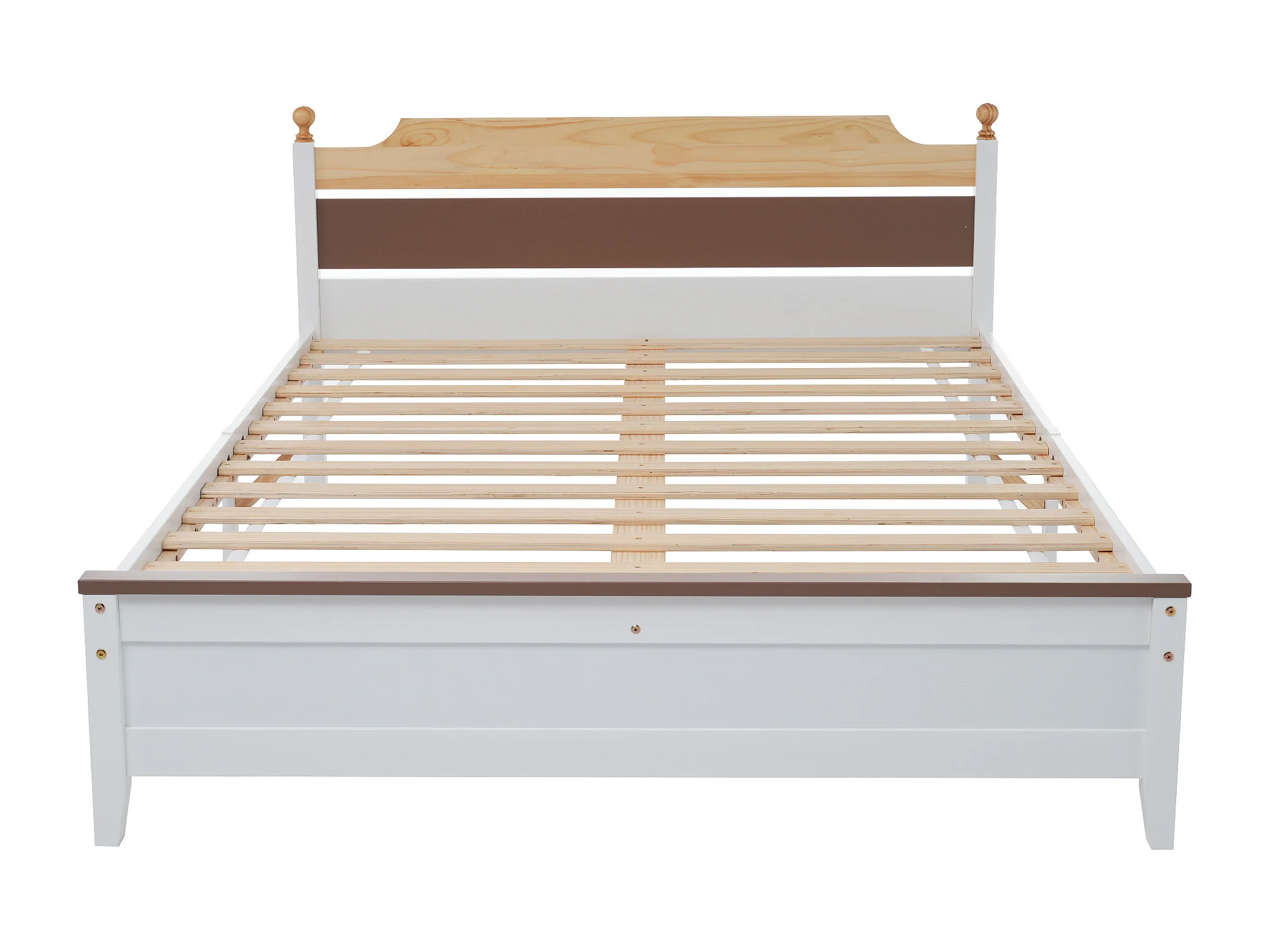 Letto matrimoniale in legno con gamba centrale, design color-block, MDF e pino, bianco, 140x200 cm (210x147,5x82,5 cm)