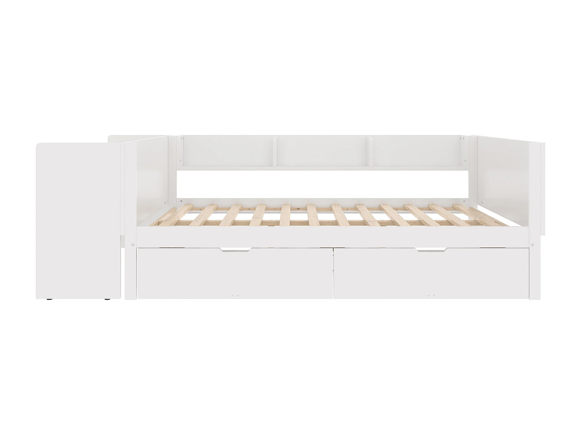 Letto matrimoniale per adulti 140x200 cm con base - scrivania e 3 ripiani 2 cassetti - legno - bianco (senza materasso)