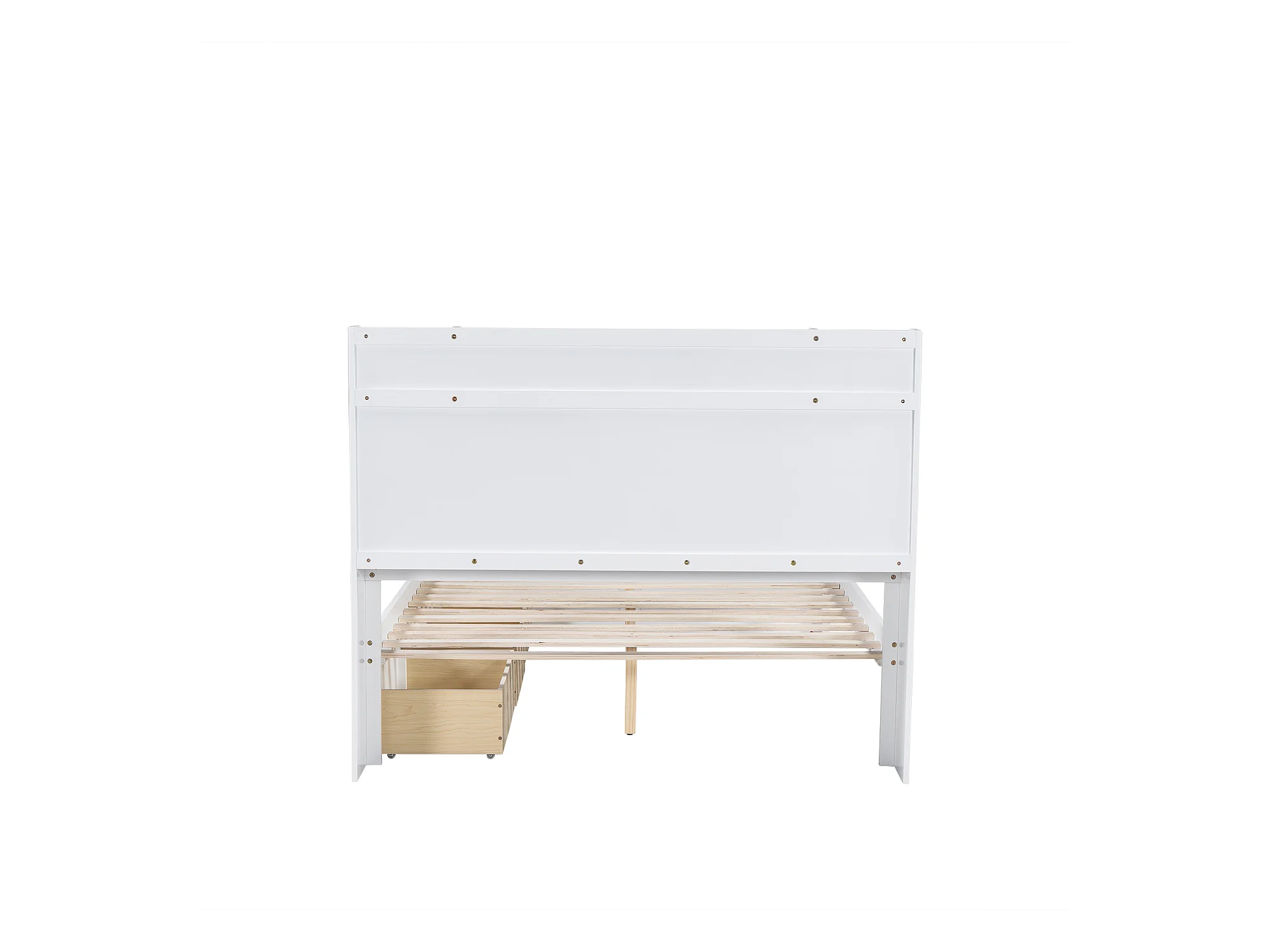Letto matrimoniale per adulti 140x200cm con 3 cassetti e contenitore, pino + MDF, bianco + grigio, senza materasso