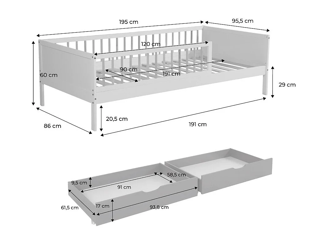 Letto nido per bambini 190cm in pino naturale con rete a doghe e