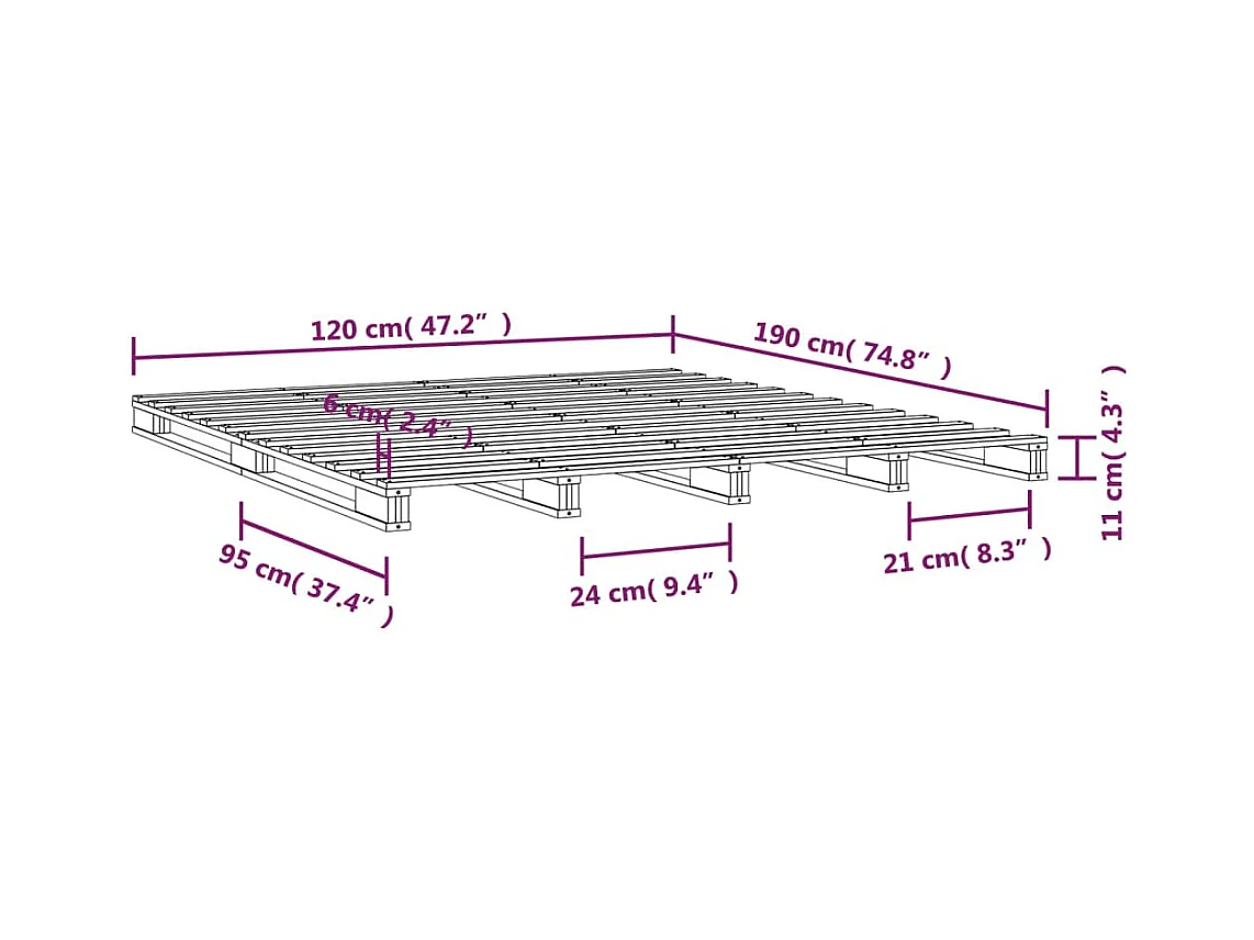 Letto pallet 120x190 cm Legno massello di pino Letto matrimoniale piccolo