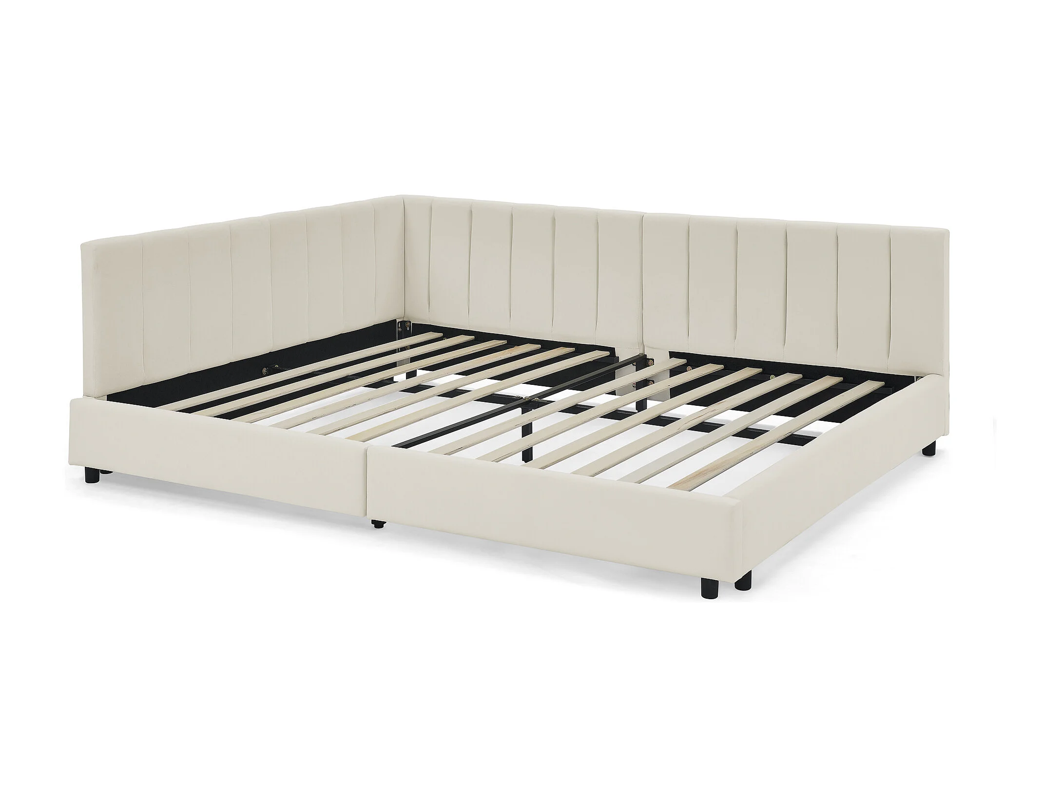 Letto per adulti 140 x 200 cm - Letto matrimoniale a righe verticali - velluto beige - materasso non incluso