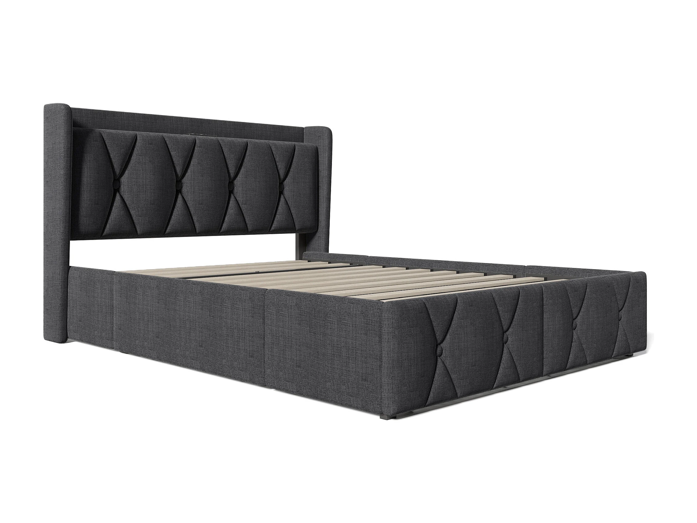 Letto per adulti 160x200 - con testiera, 4 cassetti, porta USB - lino grigio - materasso incluso