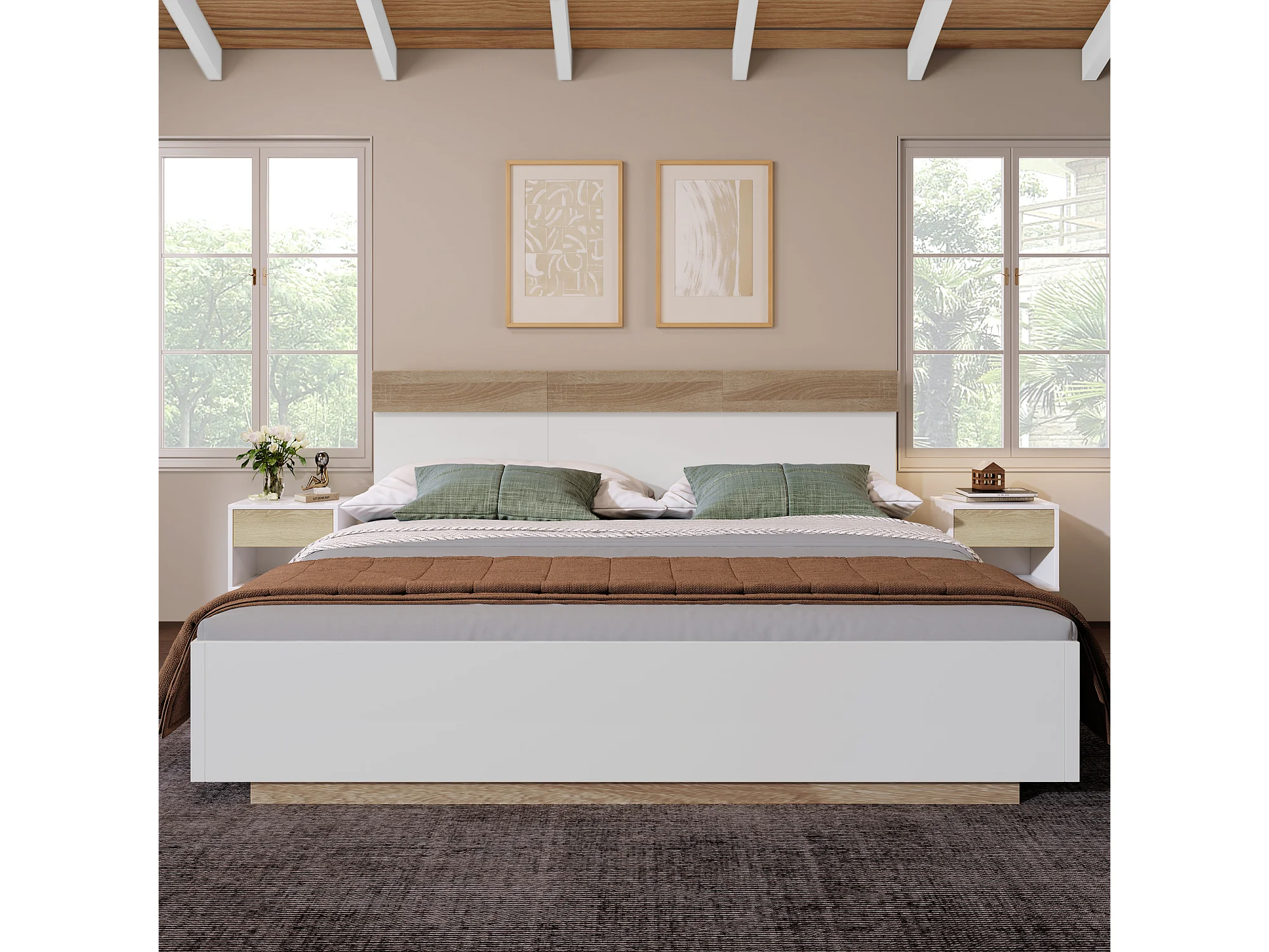 Letto per adulti 180 x 200 cm con testiera - Legno bianco - Materasso non incluso