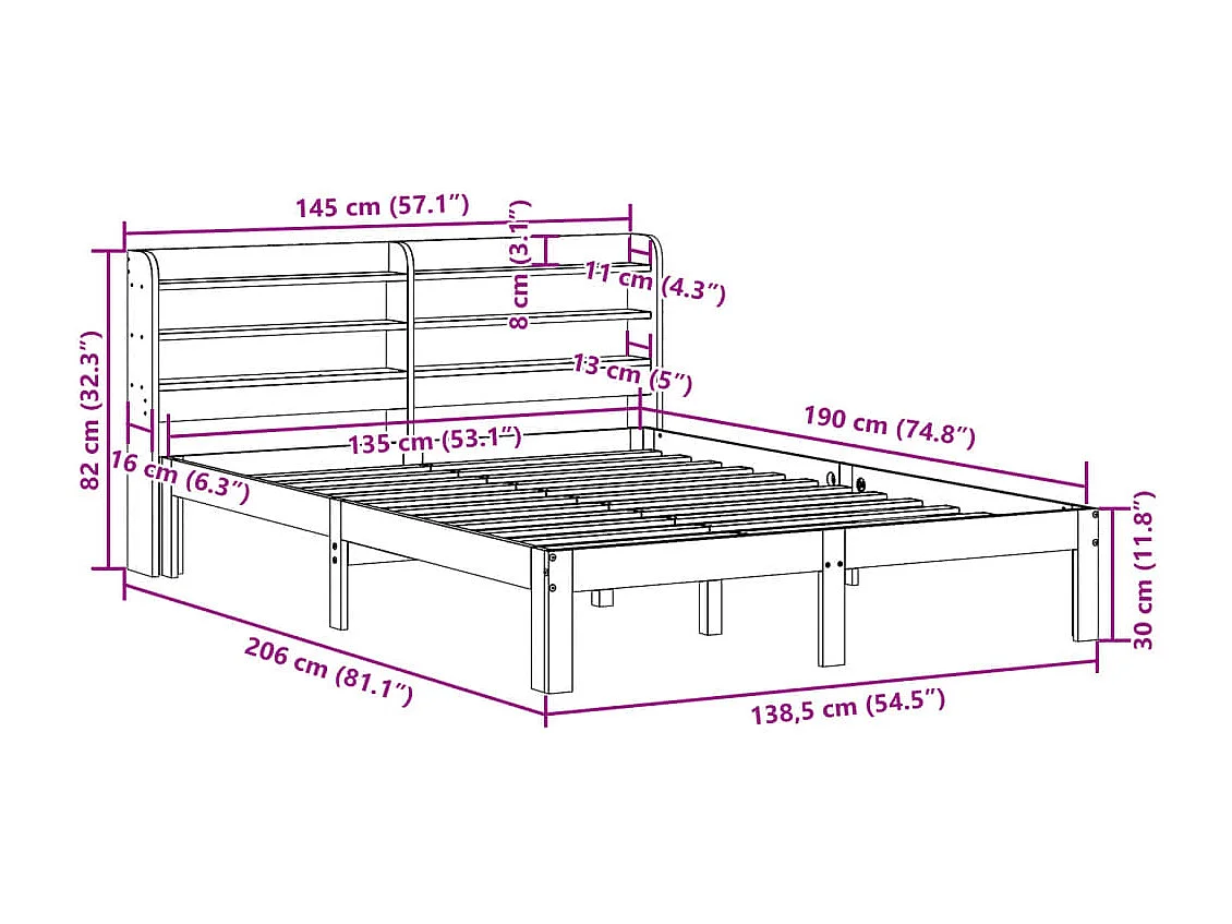Letto per adulti | Letto matrimoniale | Giroletto senza Materasso con Testata 135x190 cm Massello Pino