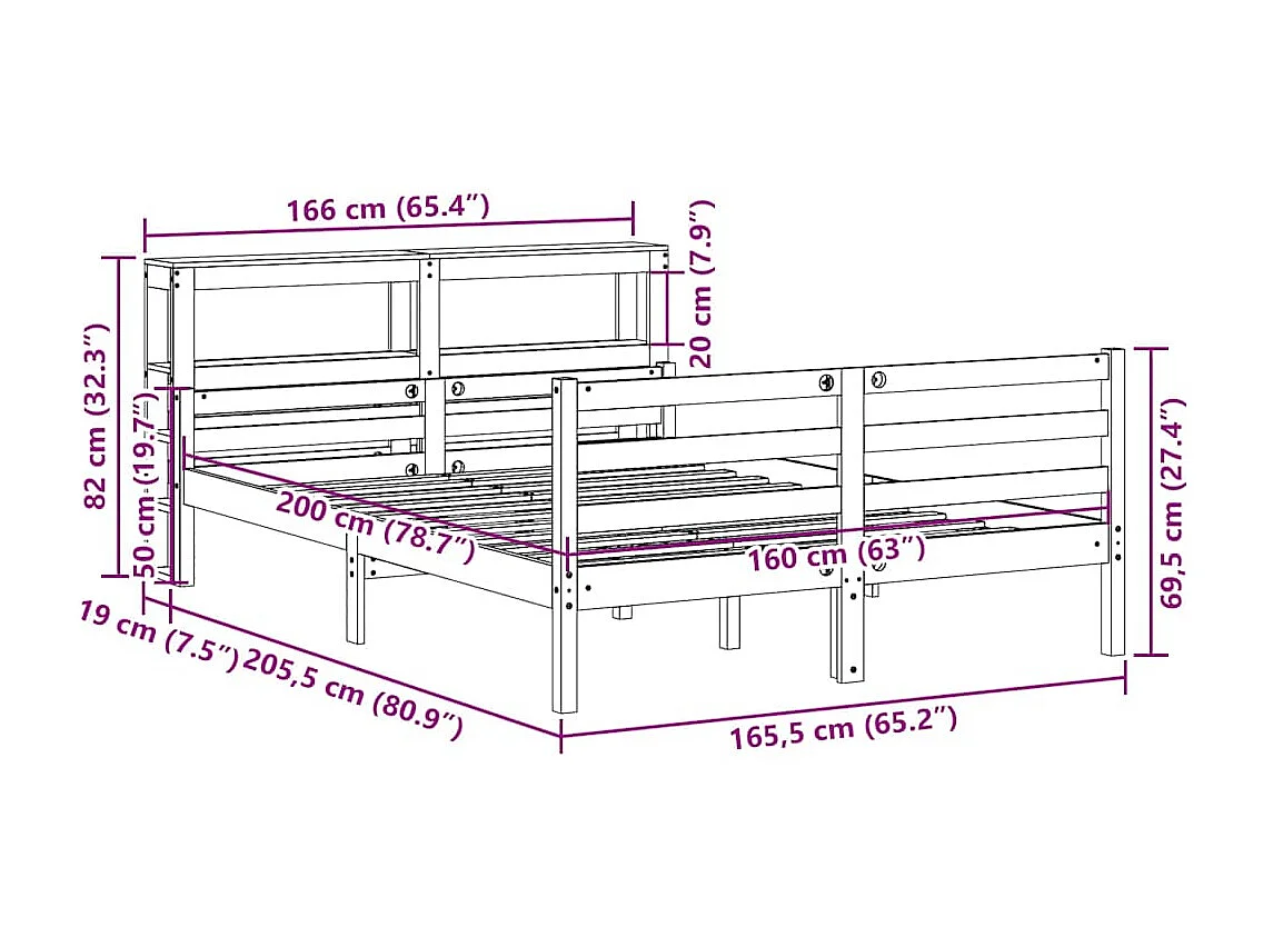 Letto per adulti | Letto matrimoniale | Giroletto senza Materasso 160x200 cm in Legno Massello di Pino