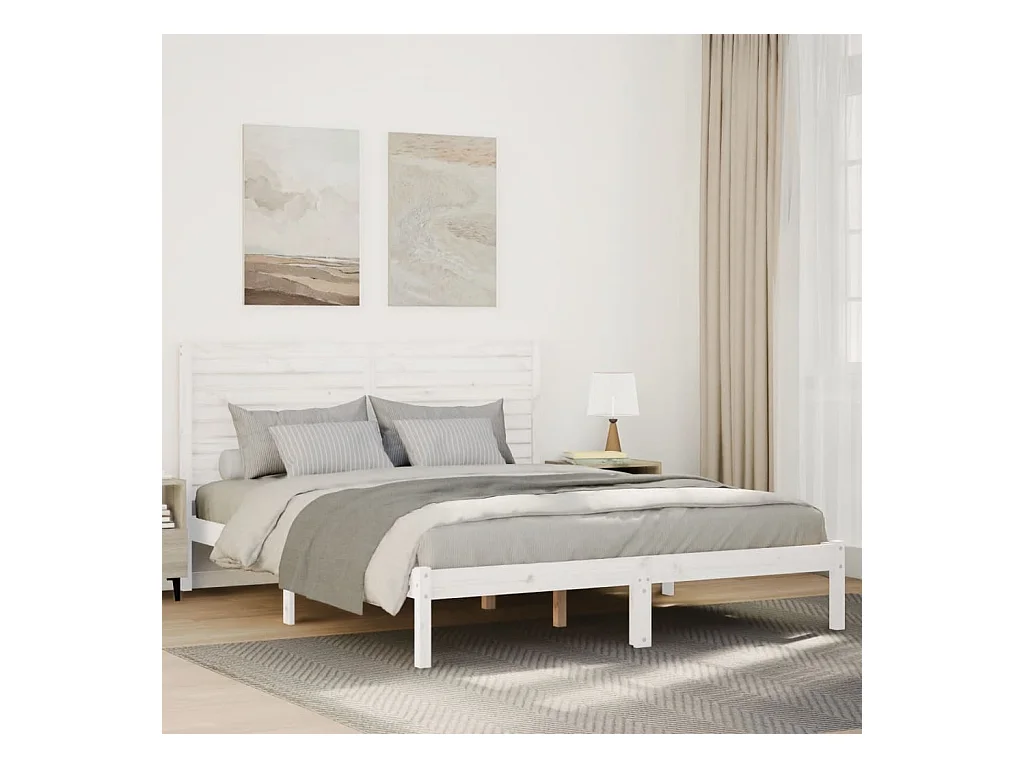 Letto per adulti | Letto matrimoniale | Giroletto senza Materasso Bianco 160x200 cm Legno Massello Pino