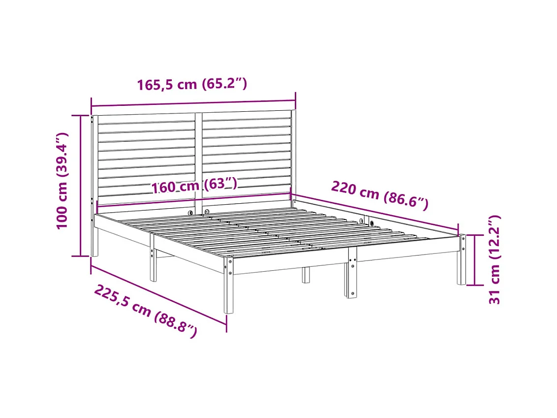 Letto per adulti | Letto matrimoniale | Giroletto Extra Lungo senza Materasso Bianco 160x220cm Massello