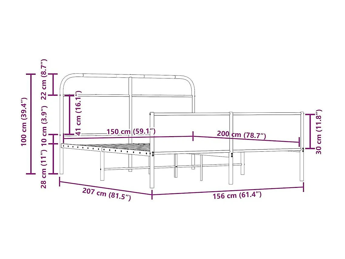 Letto per adulti | Letto matrimoniale | Giroletto senza Materaso in Metallo Rovere Fumo 150x200 cm