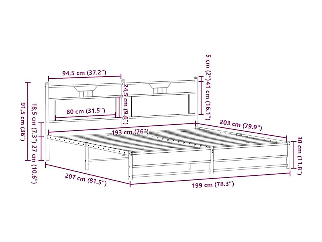 Letto per adulti | Letto matrimoniale | Giroletto senza Materaso in Metallo Rovere Marrone 193x203 cm