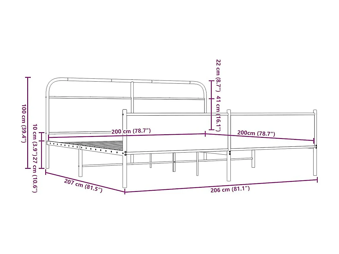 Letto per adulti | Letto matrimoniale | Giroletto senza Materaso in Metallo Rovere Fumo 200x200 cm