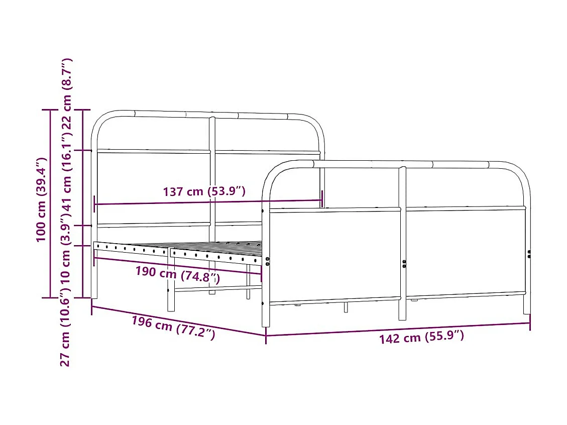 Letto per adulti | Letto matrimoniale | Giroletto senza Materaso in Metallo Rovere Sonoma 137x190 cm
