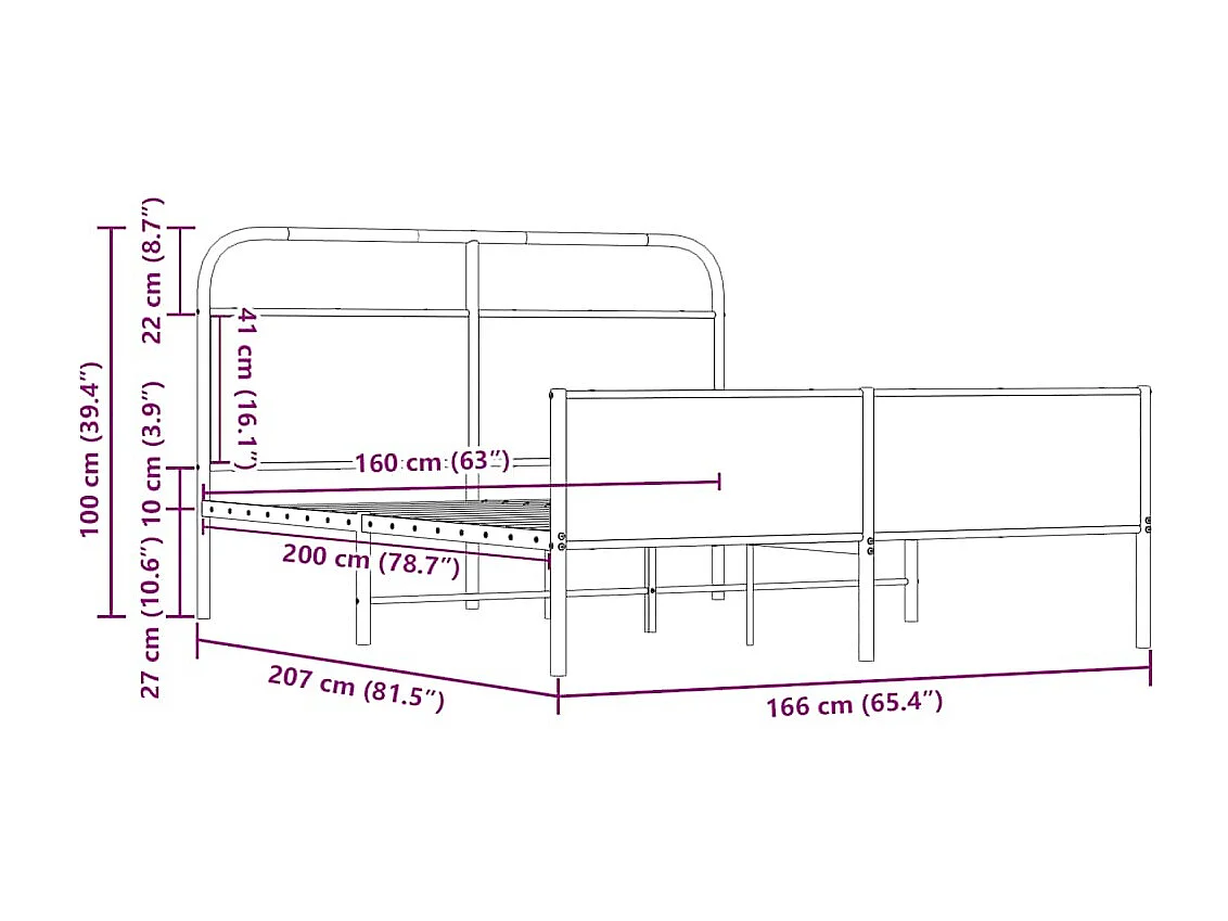 Letto per adulti | Letto matrimoniale | Giroletto senza Materaso in Metallo Rovere Sonoma 160x200 cm