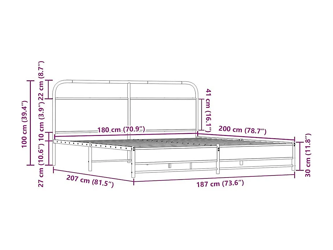 Letto per adulti | Letto matrimoniale | Giroletto senza Materaso in Metallo Rovere Sonoma 180x200 cm