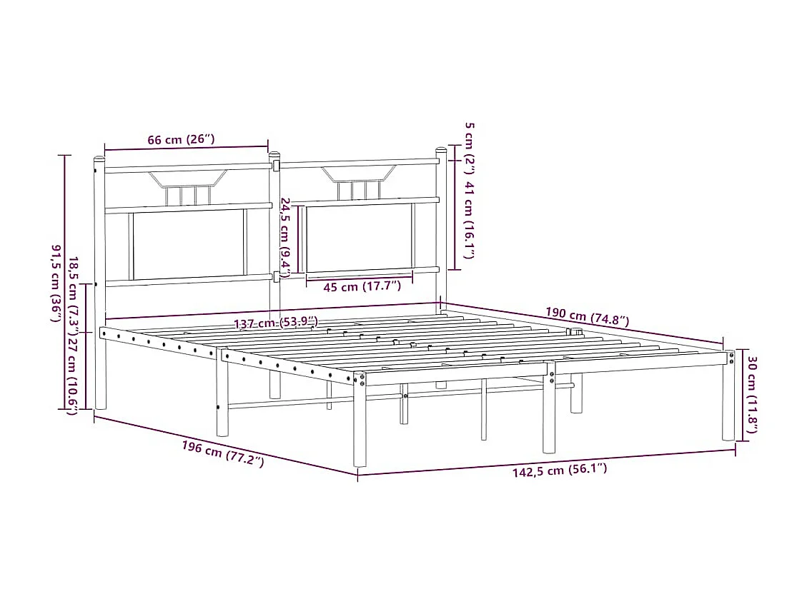 Letto per adulti | Letto matrimoniale | Giroletto senza Materasso Rovere Fumo 137x190 cm in Truciolato