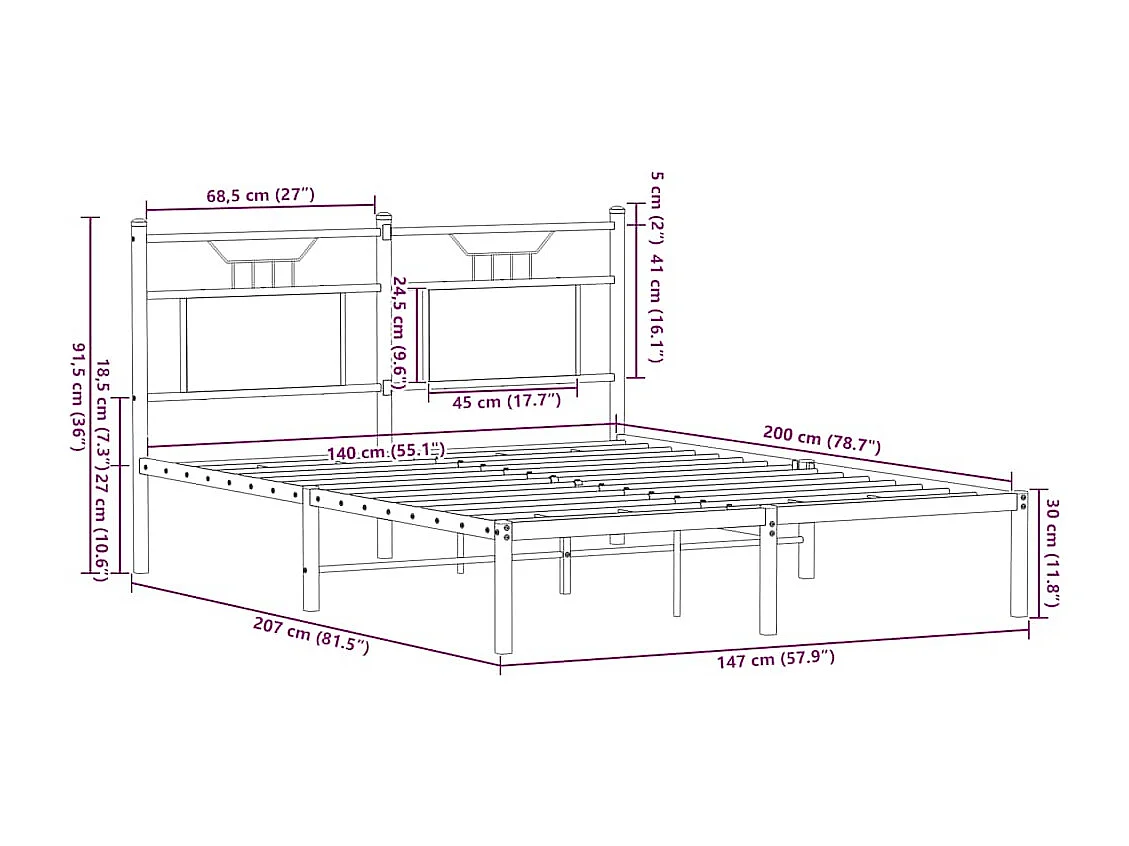 Letto per adulti | Letto matrimoniale | Giroletto senza Materasso Rovere Fumo 140x200 cm in Truciolato