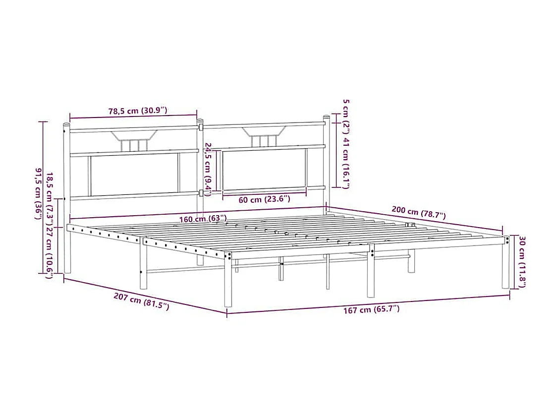Letto per adulti | Letto matrimoniale | Giroletto senza Materasso Rovere Sonoma 160x200cm in Truciolato