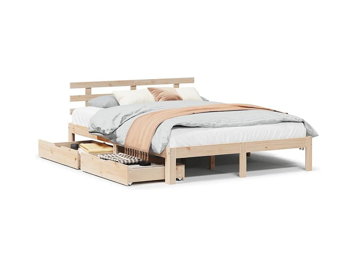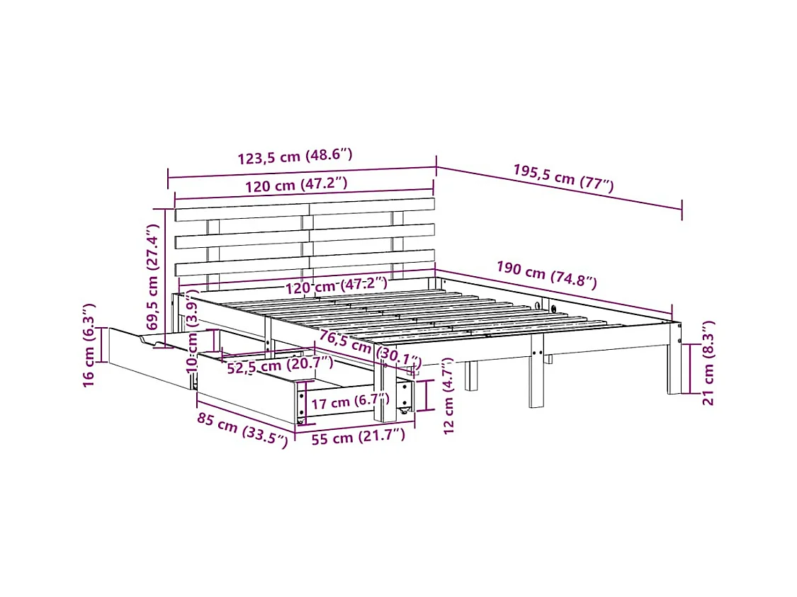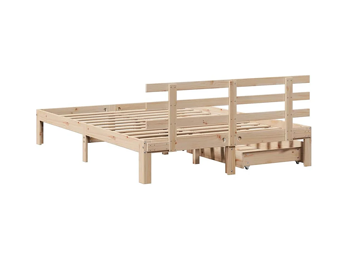 Letto per adulti | Letto singolo | Giroletto con Cassetti 120x190 cm in Legno Massello di Pino