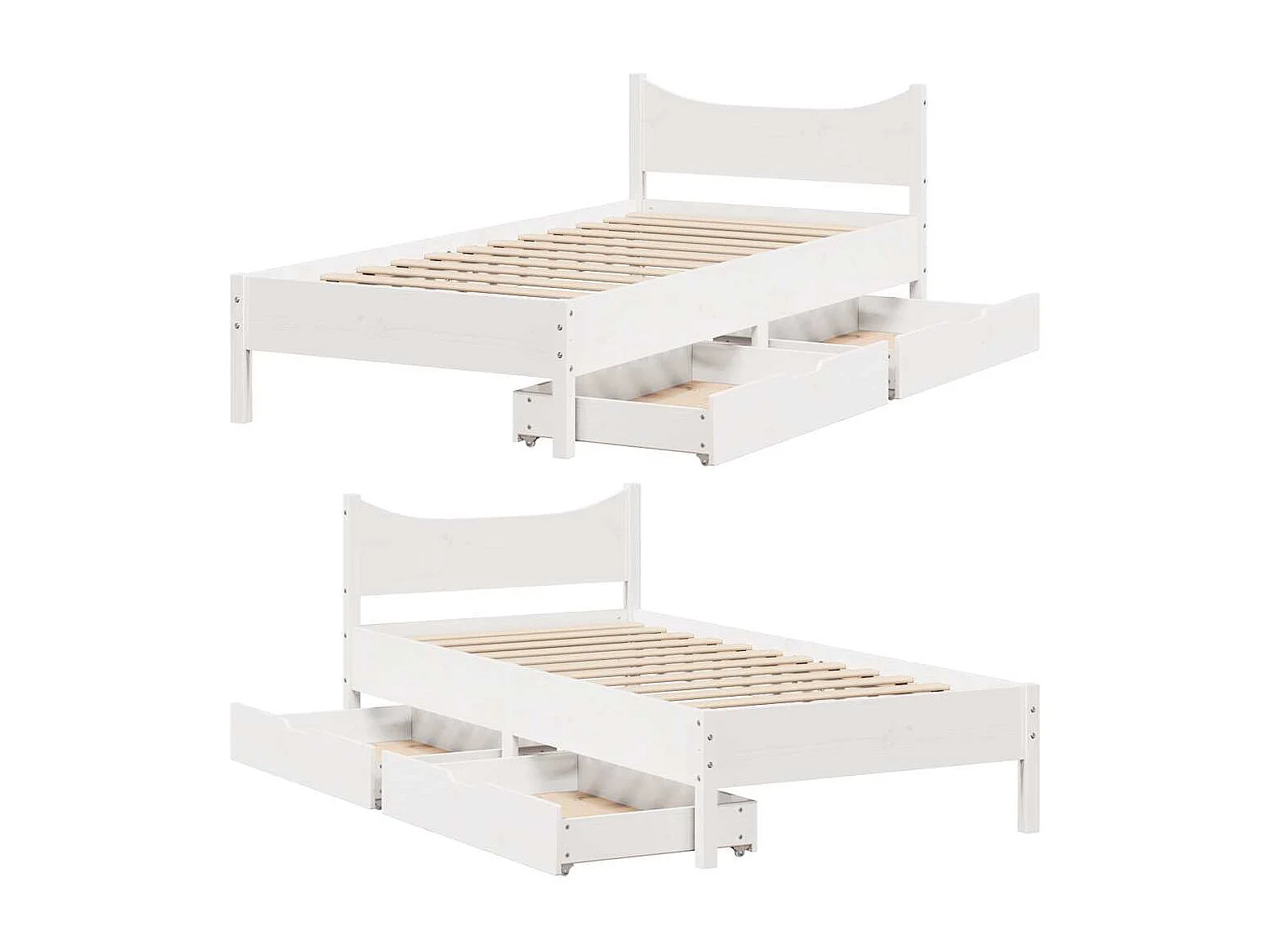 Letto per adulti | Letto singolo | Giroletto con Cassetti Bianco 90x200 cm Legno Massello di Pino