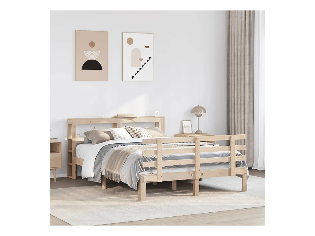 Letto per adulti | Letto singolo | Giroletto con Testiera 120x200 cm in Legno Massello di Pino
