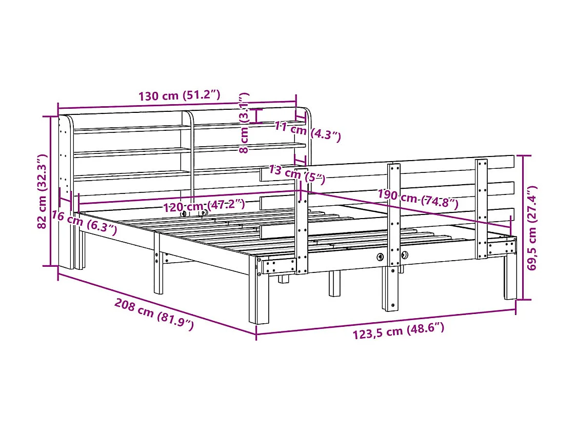 Letto per adulti | Letto singolo | Giroletto con Testiera Bianco 120x190 cm Legno Massello di Pino