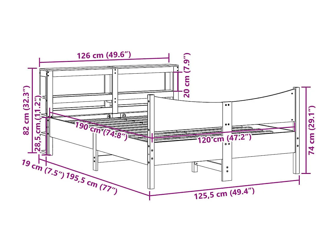 Letto per adulti | Letto singolo | Giroletto con Testiera Bianco 120x190 cm Legno Massello di Pino