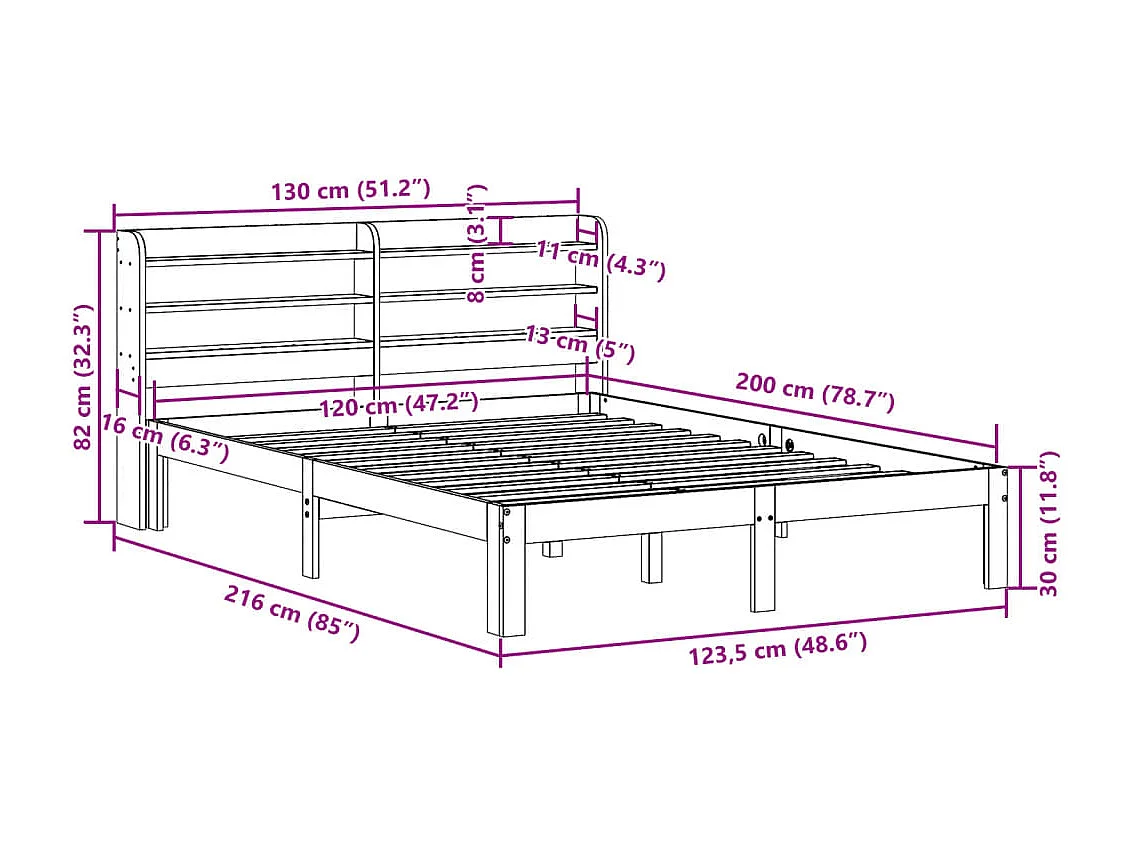 Letto per adulti | Letto singolo | Giroletto senza Materasso Bianco 120x200 cm Legno Massello Pino