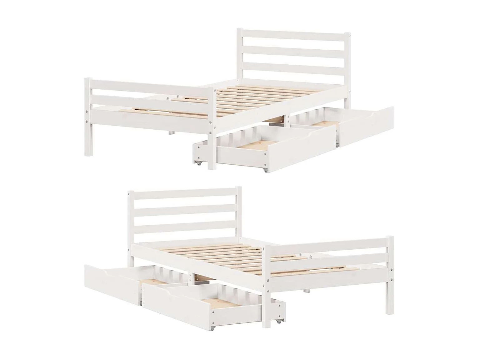 Letto per adulti | Letto singolo | Giroletto senza Materasso Bianco 100x200 cm Legno Massello Pino