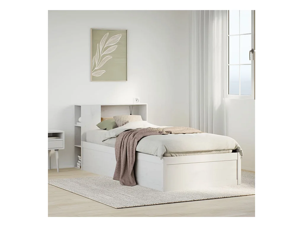 Letto Libreria senza Materasso Bianca 90x200 cm Legno di Pino
