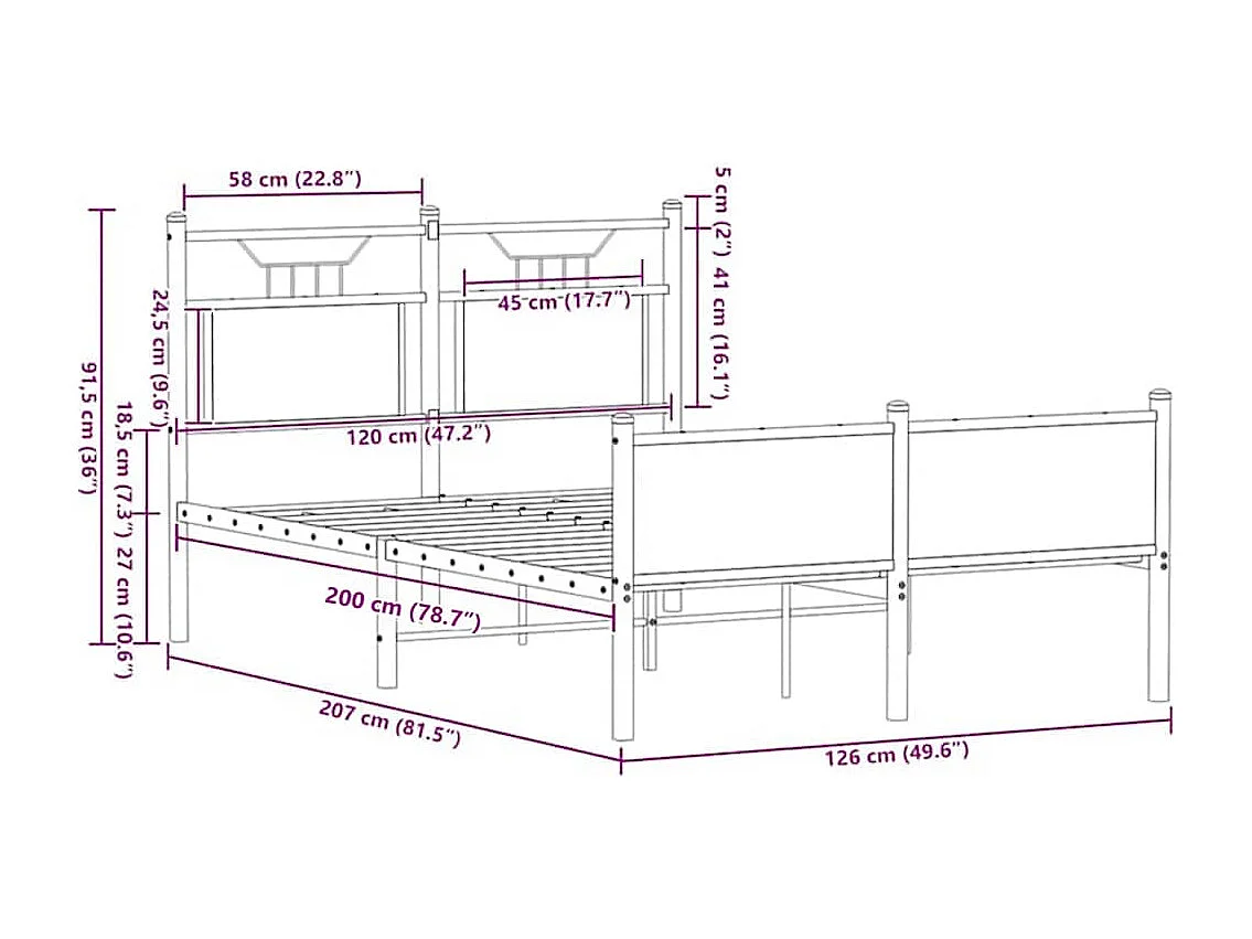 Letto per adulti | Letto singolo | Giroletto Testiera Rovere Marrone 120x200 cm Legno Multistrato
