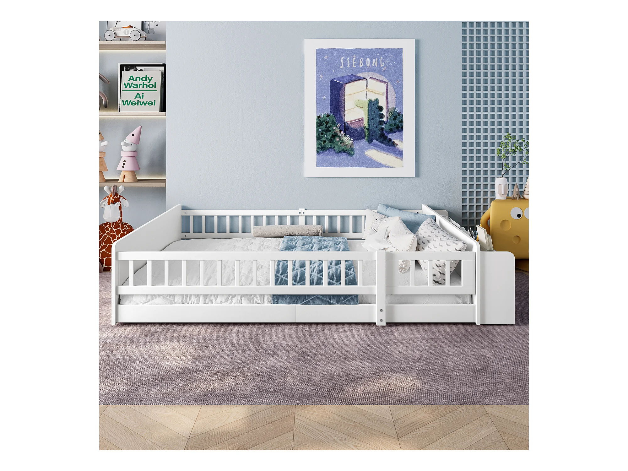 Letto con contenitori e cassetti