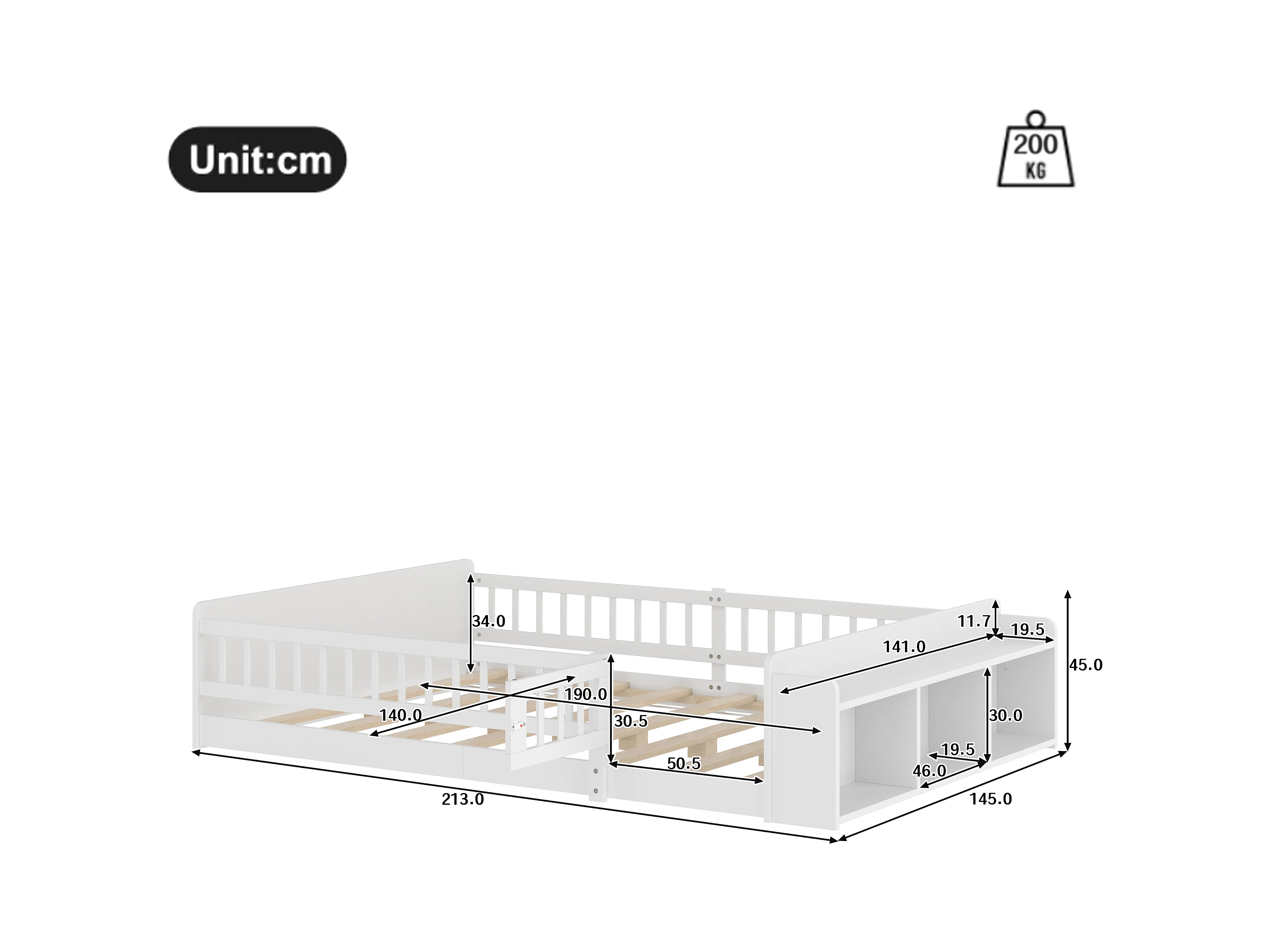 Letto per bambini 140 x 190 cm - Letto per ragazzi con contenitore aperto - legno bianco - senza materasso