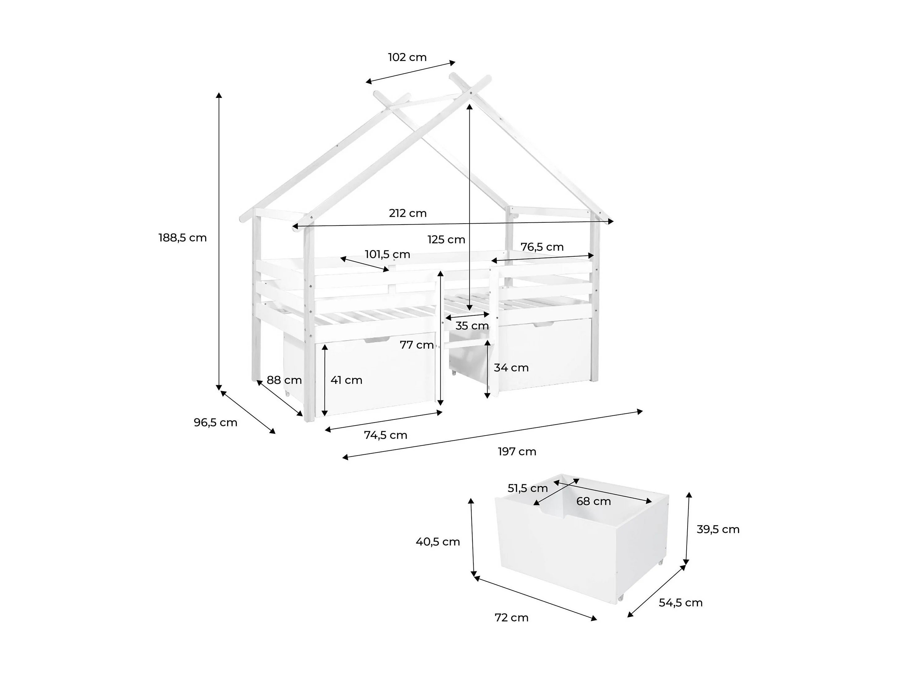 Letto per bambini 90 x 190 cm in legno di pino con rete a doghe