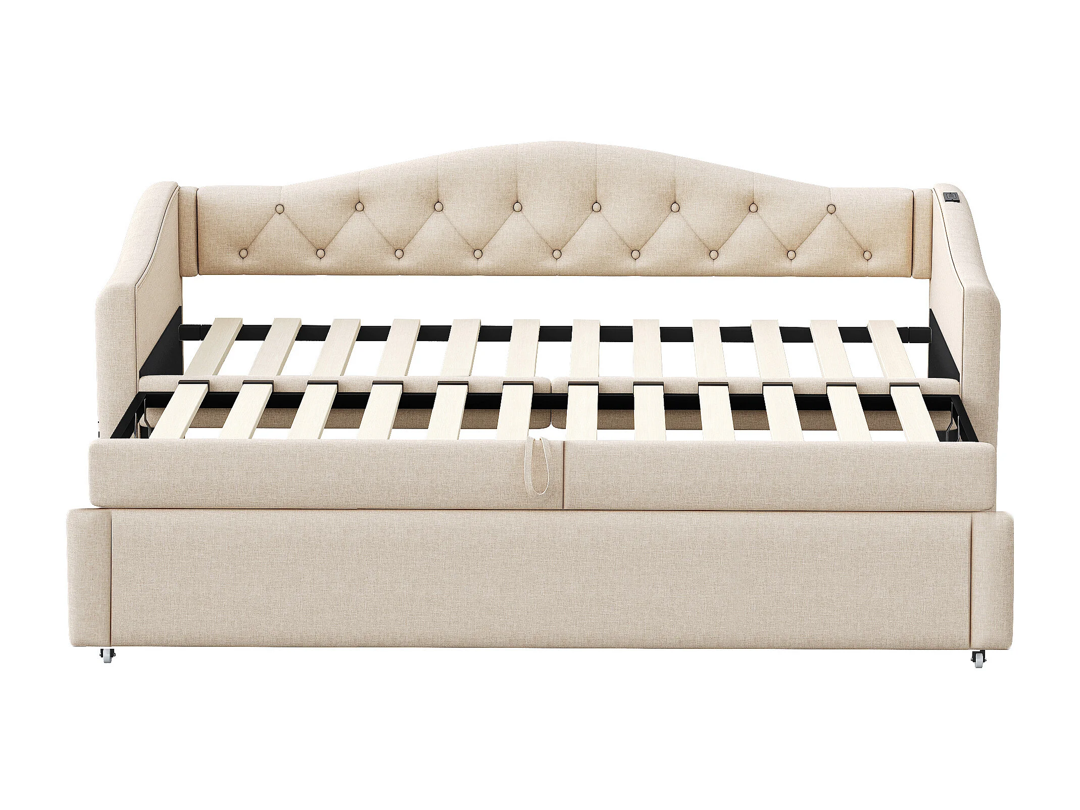 Letto per bambini 90 x 200 cm - con porta USB e rete a doghe - lino beige - materasso non incluso