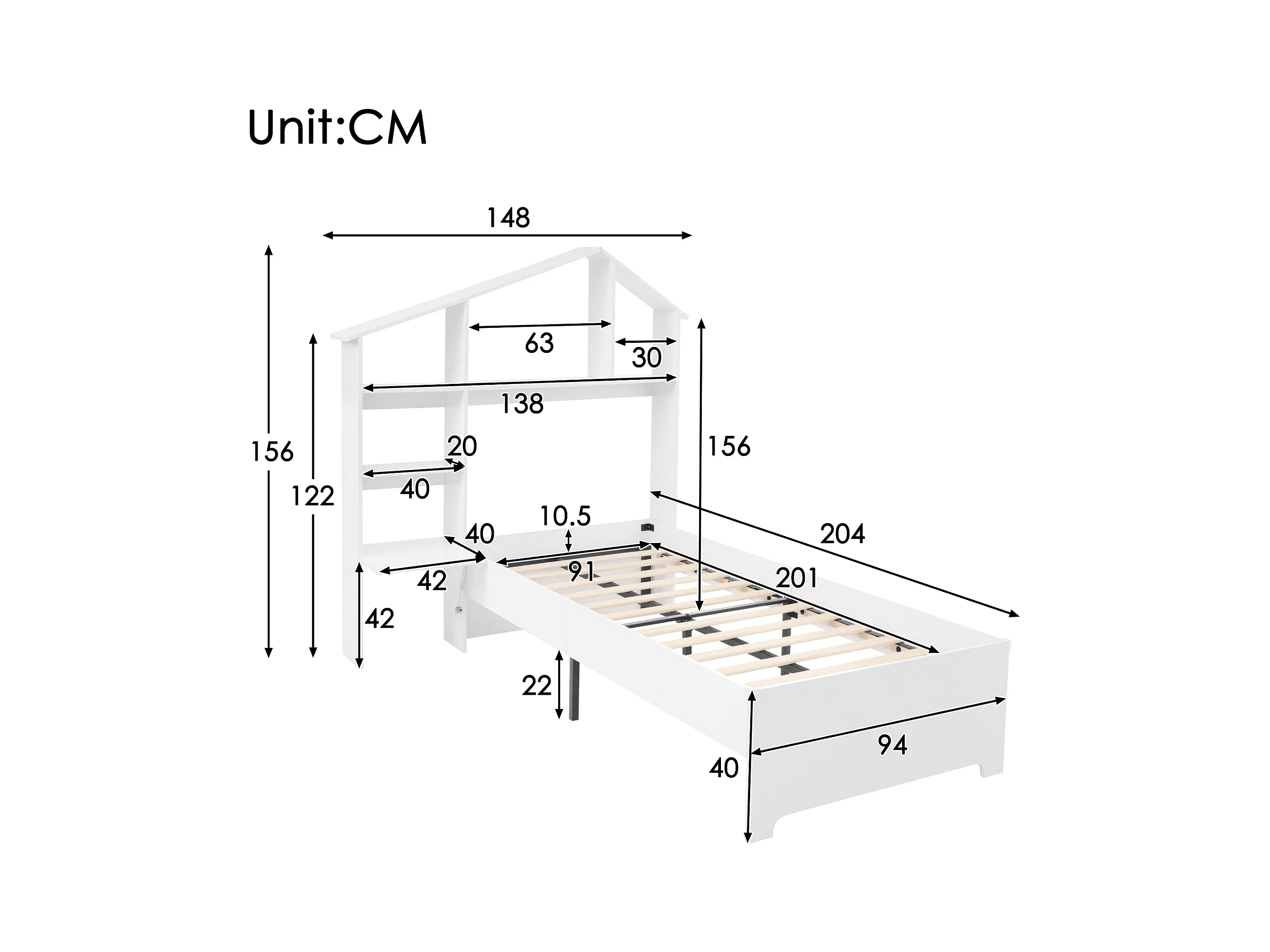 Contenuto della confezione :Struttura letto+libreria+rete a doghe