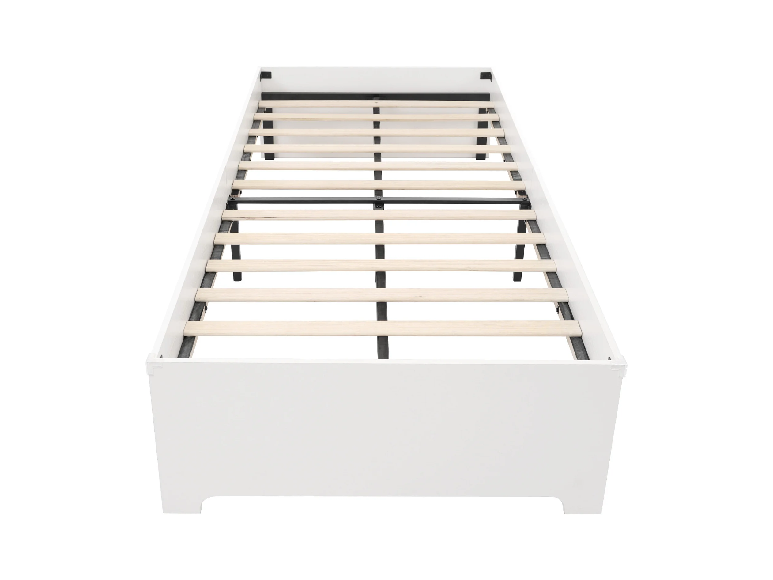 Questo letto in legno combina una robusta struttura in ferro con doghe in legno massiccio per offrire durata e un'estetica moderna e minimalista. La calda vernice goffrata bianca conferisce alla camera da letto un'atmosfera accogliente ed è perfetta per una varietà di stili di arredamento.