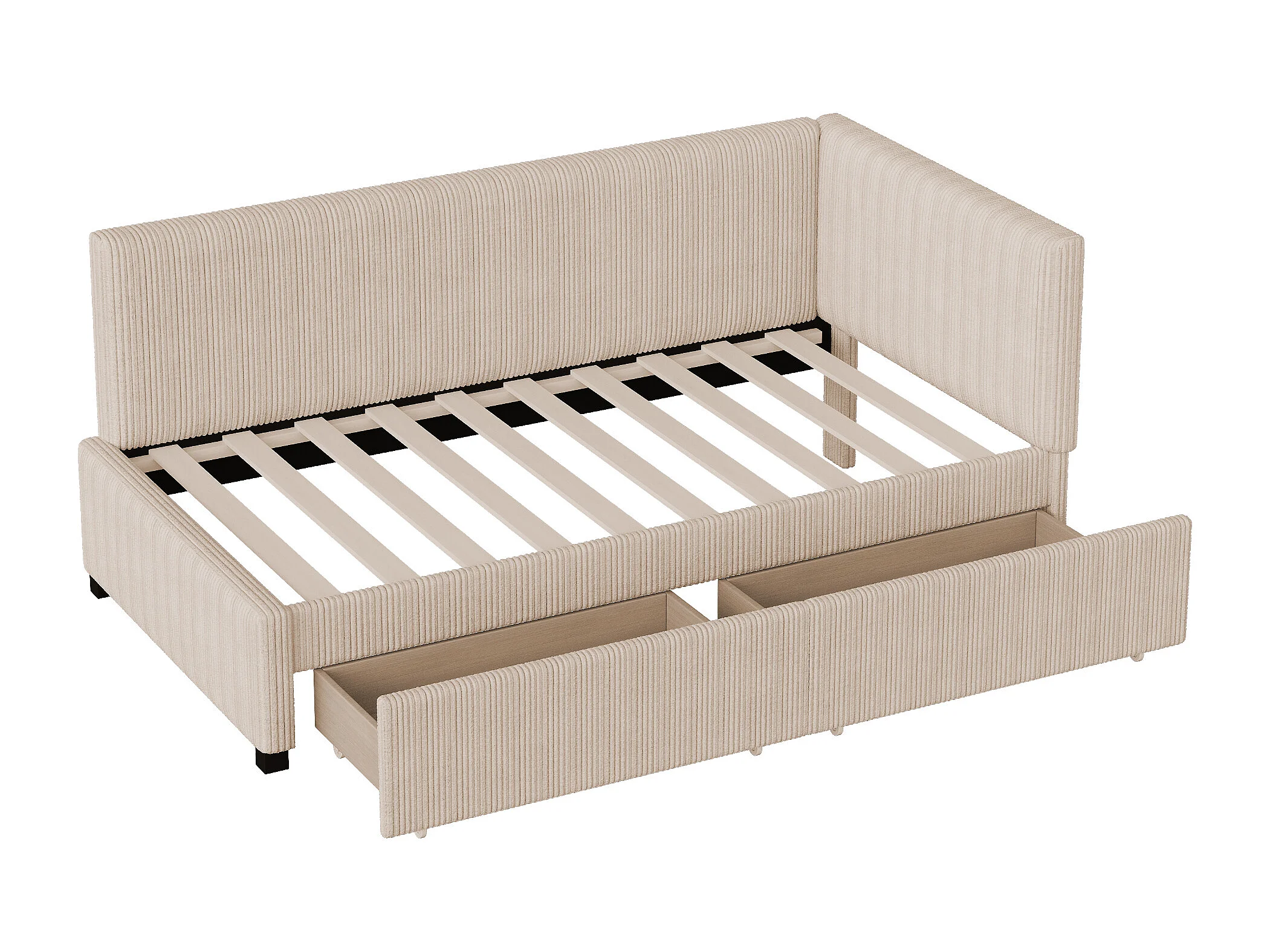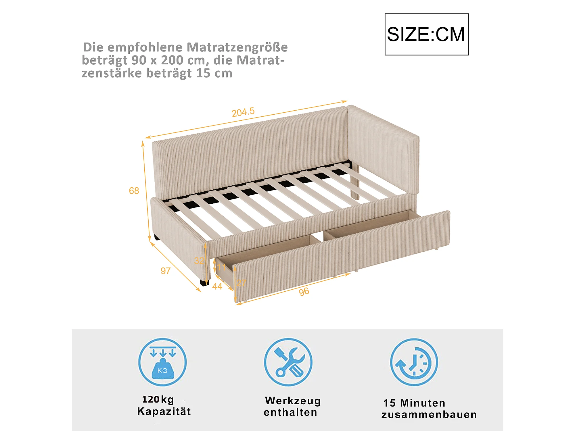 Letto per bambini 90x200 cm - con 2 cassetti, rete a doghe - beige - materasso non incluso