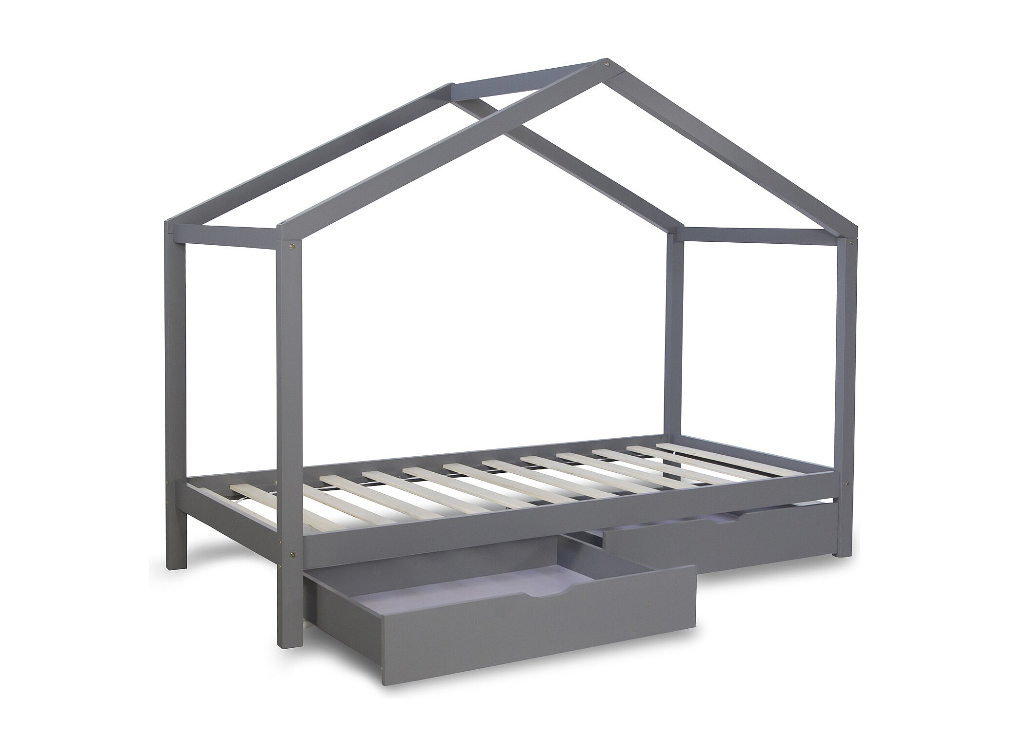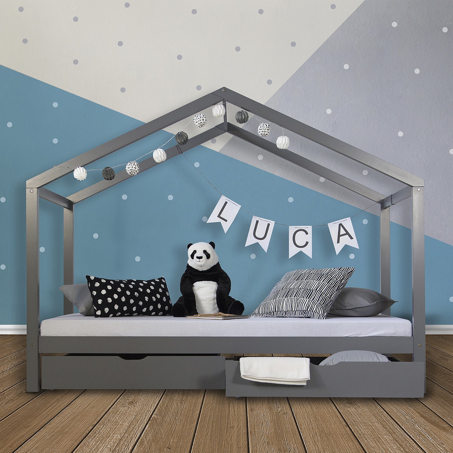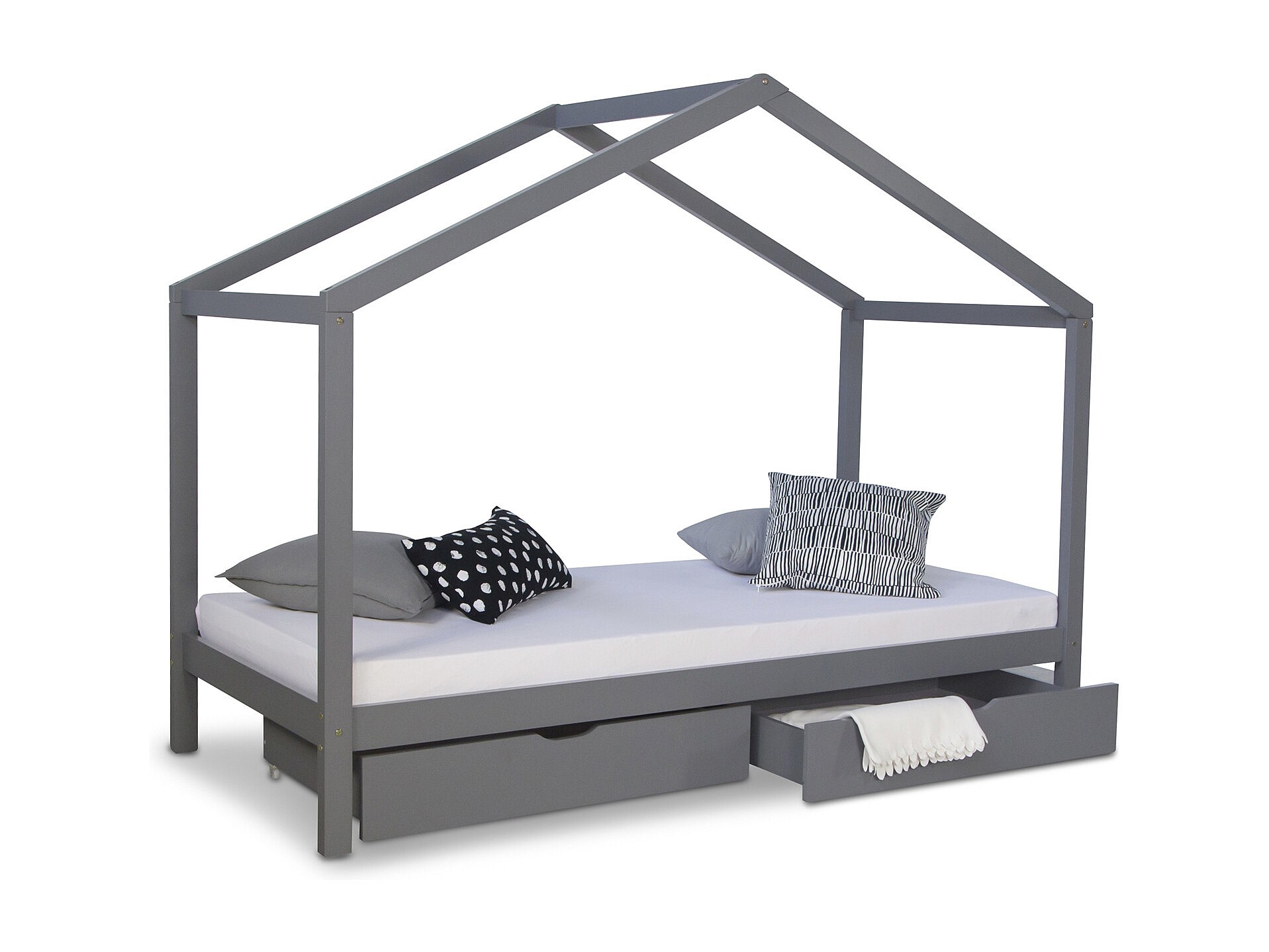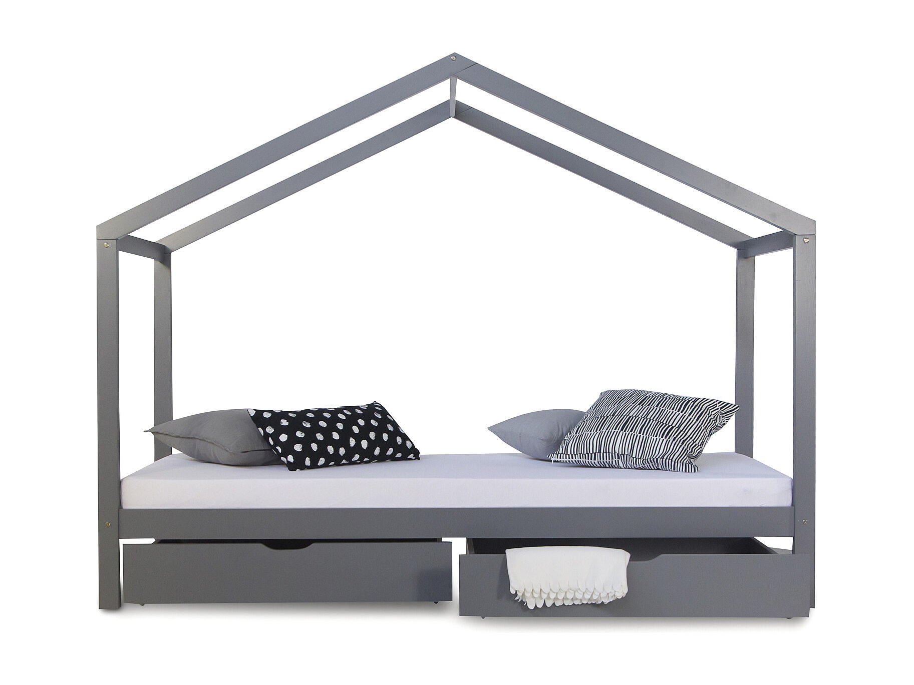 Letto per bambini 90x200 cm Casa grigia Letto per bambini Letto in legno Lettino con cassetto
