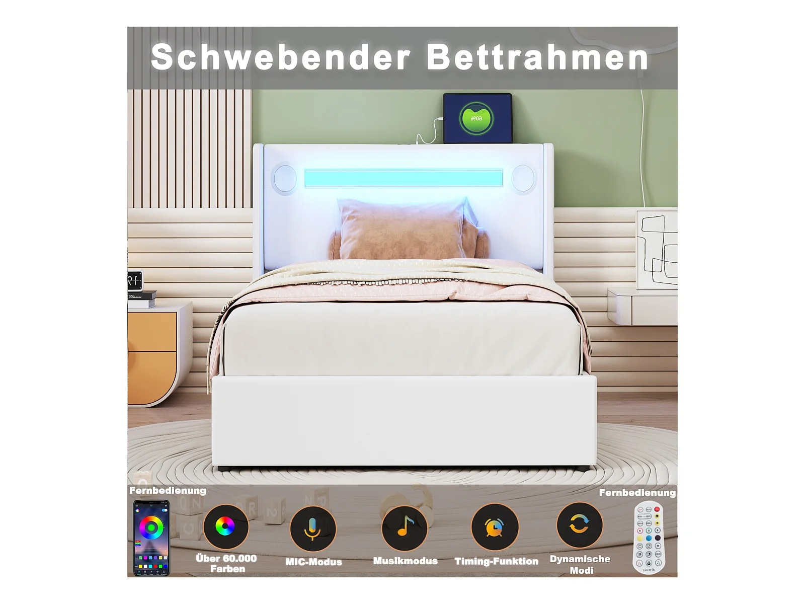 Divano letto 90x200 cm in truciolare bianco - Senza materasso, letto estraibile, divano letto con porta USB
