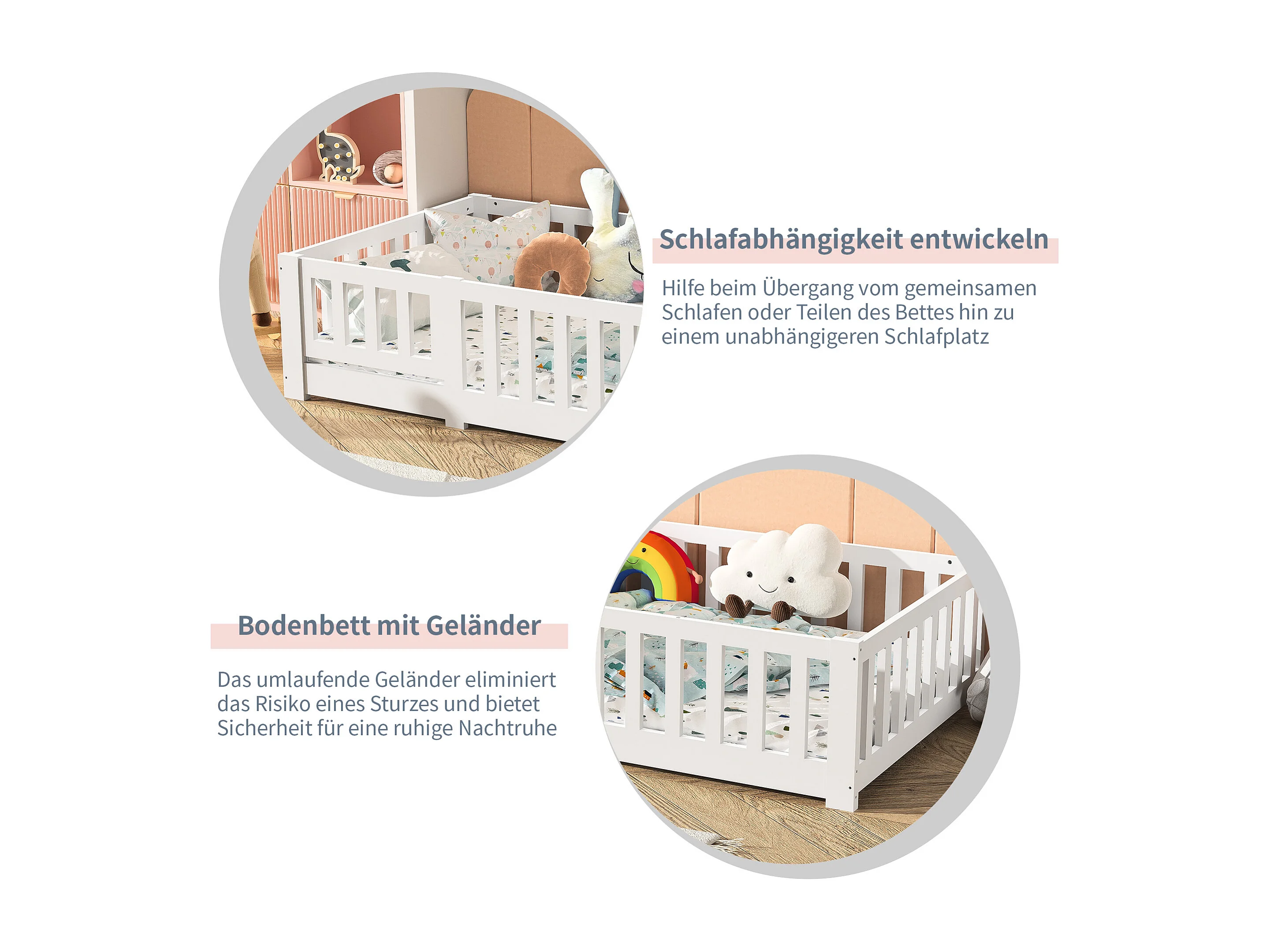 Letto per bambini 90x200 cm, letto a terra con recinzione e porta, barriera di sicurezza per bambini per letto, bianco