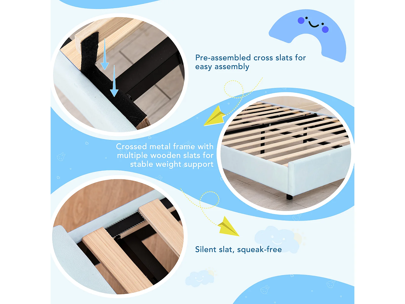 Letto per bambini 90x200 cm rosa, facile da montare, con LED multicolori e originale testiera a forma di nuvola