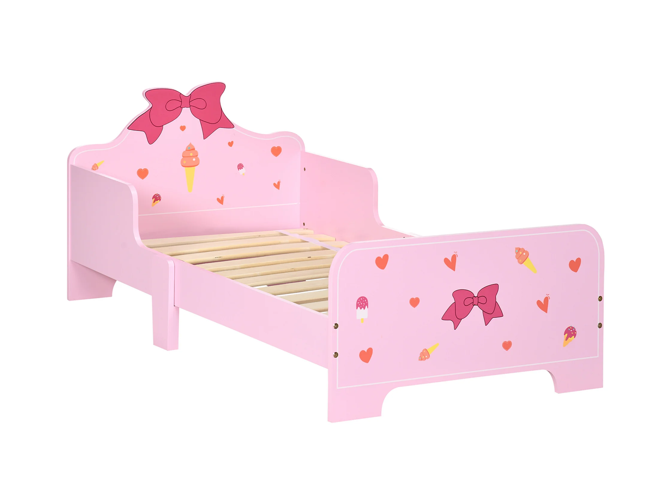Letto per bambini da 3-6 anni con doghe e bordi rialzati rosa