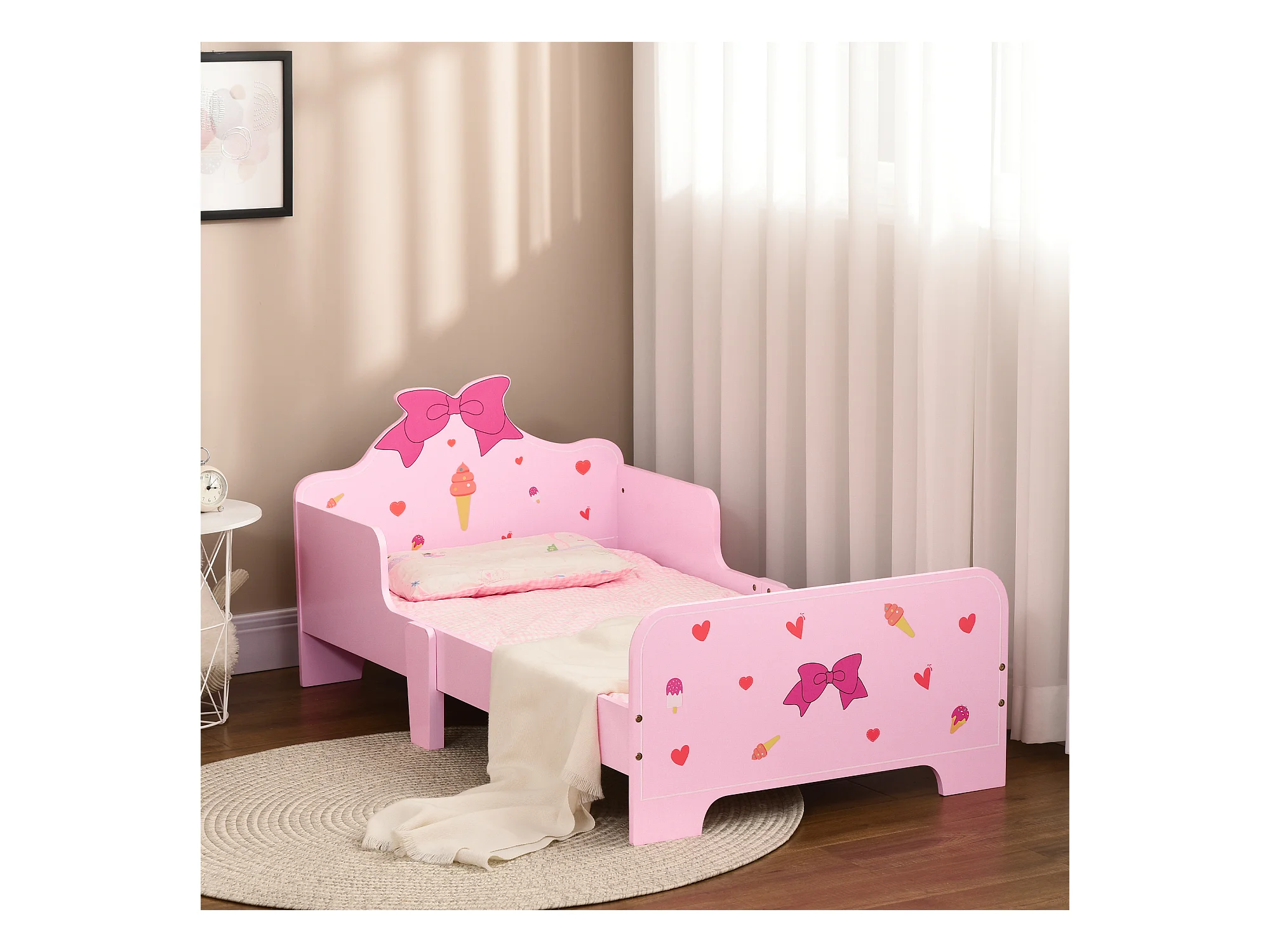Lettino per bambini 3-6 anni in legno rosa con bordo rialzato