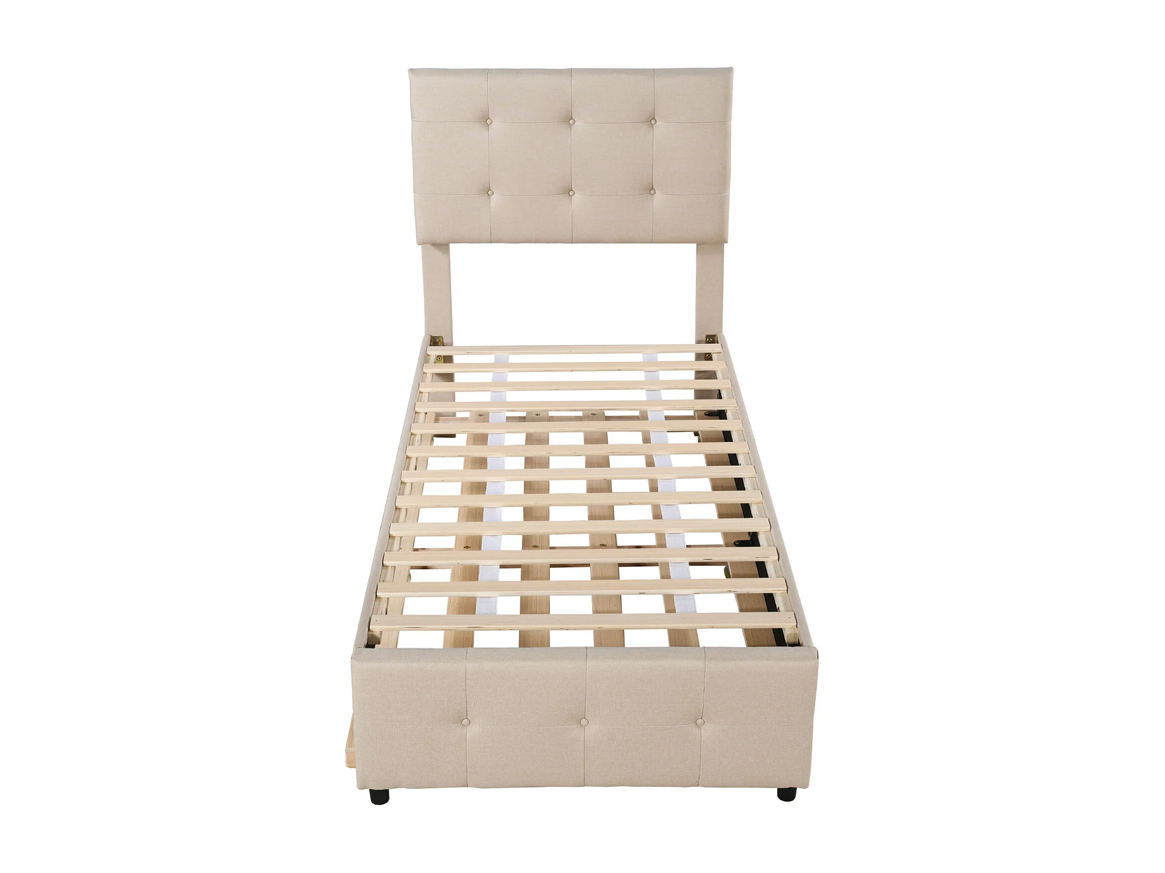 Letto singolo per bambini 90x200cm, letto imbottito in flanella, letto piano con 1 giroletto, con rete a doghe e testiera, beige